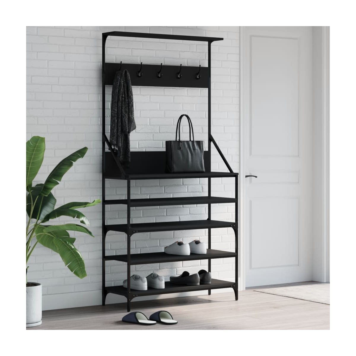 ¡Haz limpieza de armario y escoge fácilmente un conjunto de ropa con este perchero! Material duradero: La madera de ingeniería tiene una calidad excepcional, con una superficie lisa y también cuenta con fuerza, estabilidad y resistencia a la humedad.Amplio espacio de almacenamiento: El perchero ofrece un amplio espacio de almacenamiento para guardar ropa y bolsos de forma bien organizada. Los estantes inferiores son perfectos para los zapatos.Diseño elegante y compacto: Las líneas limpias y el diseño minimalista hacen que el perchero de pie se integre perfectamente en la estancia y también es perfecto para espacios pequeños gracias a su compacto tamaño. Información útil:Los tornillos y los tacos para el interior de la pared no están incluidos. Recomendamos encontrar y utilizar tornillos y tacos adecuados específicamente para las paredes. Si no estás seguro, puedes consultar con un profesional. Lee y sigue cada paso de las instrucciones.