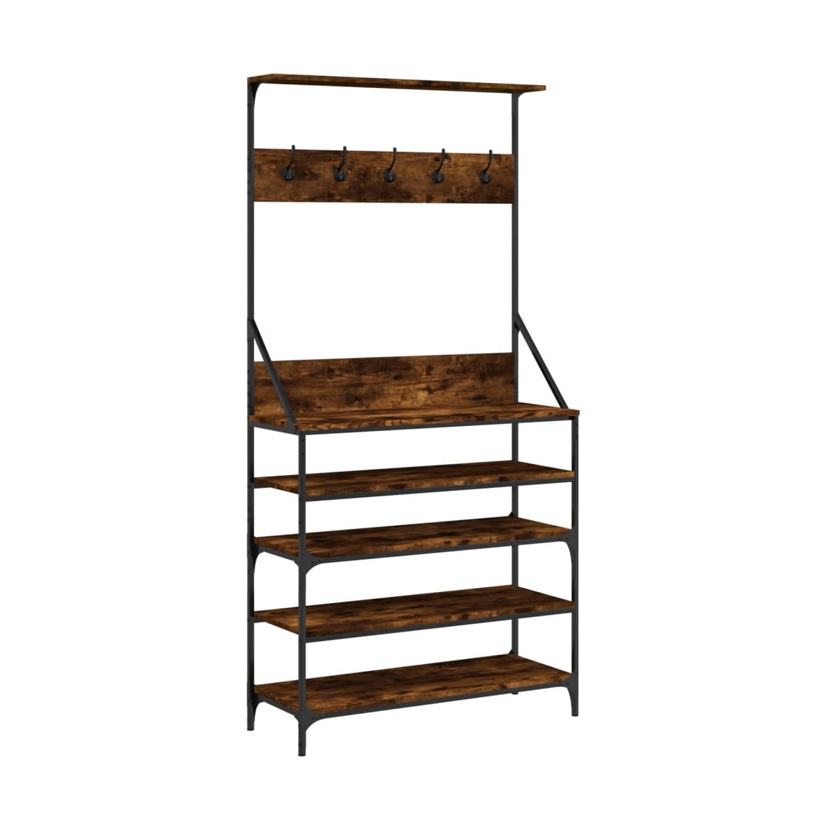 ¡Haz limpieza de armario y escoge fácilmente un conjunto de ropa con este perchero! Material duradero: La madera de ingeniería tiene una calidad excepcional, con una superficie lisa y también cuenta con fuerza, estabilidad y resistencia a la humedad.Amplio espacio de almacenamiento: El perchero ofrece un amplio espacio de almacenamiento para guardar ropa y bolsos de forma bien organizada. Los estantes inferiores son perfectos para los zapatos.Diseño elegante y compacto: Las líneas limpias y el diseño minimalista hacen que el perchero de pie se integre perfectamente en la estancia y también es perfecto para espacios pequeños gracias a su compacto tamaño. Información útil:Los tornillos y los tacos para el interior de la pared no están incluidos. Recomendamos encontrar y utilizar tornillos y tacos adecuados específicamente para las paredes. Si no estás seguro, puedes consultar con un profesional. Lee y sigue cada paso de las instrucciones.