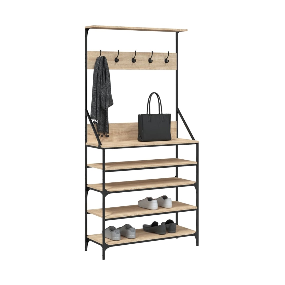 ¡Haz limpieza de armario y escoge fácilmente un conjunto de ropa con este perchero! Material duradero: La madera de ingeniería tiene una calidad excepcional, con una superficie lisa y también cuenta con fuerza, estabilidad y resistencia a la humedad.Amplio espacio de almacenamiento: El perchero ofrece un amplio espacio de almacenamiento para guardar ropa y bolsos de forma bien organizada. Los estantes inferiores son perfectos para los zapatos.Diseño elegante y compacto: Las líneas limpias y el diseño minimalista hacen que el perchero de pie se integre perfectamente en la estancia y también es perfecto para espacios pequeños gracias a su compacto tamaño. Información útil:Los tornillos y los tacos para el interior de la pared no están incluidos. Recomendamos encontrar y utilizar tornillos y tacos adecuados específicamente para las paredes. Si no estás seguro, puedes consultar con un profesional. Lee y sigue cada paso de las instrucciones.