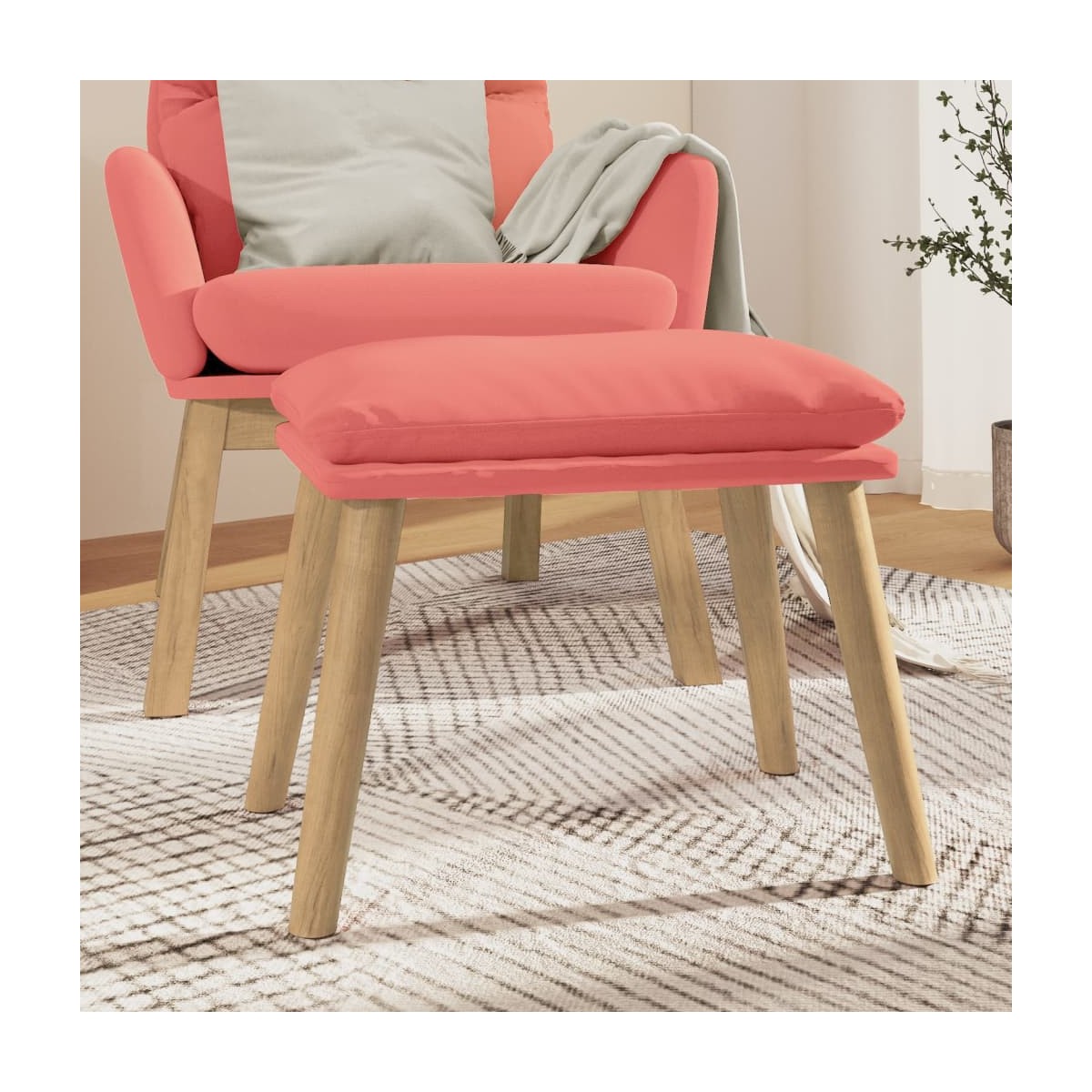 Añada un toque moderno a tu decoración interior con este acogedor y estable taburete al instante. Material de primera calidad: El terciopelo es un tejido suave y lujoso reconocido por su densa pila de fibras de corte uniforme que tienen un taco suave. La tela de terciopelo posee un característico y suave tacto, lo que hace que sea cómoda al tacto.Patas de madera: Las cuatro patas de madera de caucho dan al producto un aspecto natural y agradable a la vez que garantizan su estabilidad. Combina bien con cualquier decoración de interior.Diseño multifuncional: Este taburete es adecuado para descansar los pies cuando te recuestas en el sofá, el sillón reclinable, y te ofrece un asiento adicional en la estancia.