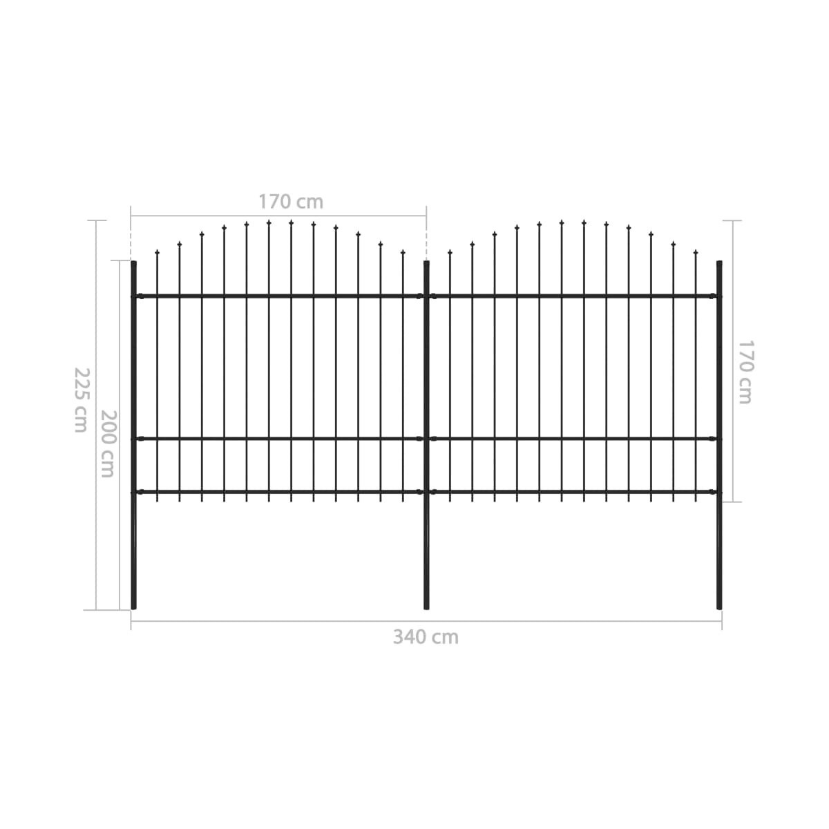¡Cree una barrera segura alrededor de su propiedad con nuestra cerca de jardín premium! Esta valla de jardín de acero de alta calidad, que consta de 2 paneles de valla y 3 postes, tiene una longitud total de 3,4 metros. Formará una robusta barrera perimetral, segura y sin necesidad de mantenimiento para su jardín, hogar o propiedad comercial. Fabricada en acero resistente, la valla es extremadamente estable, robusta y duradera. Además, con barras verticales rematadas con puntas de lanza y un fuerte refuerzo horizontal que fortalecerá la estructura, nuestra cerca de jardín proporcionará un alto grado de privacidad y seguridad. El panel de la cerca es fácil de montar.