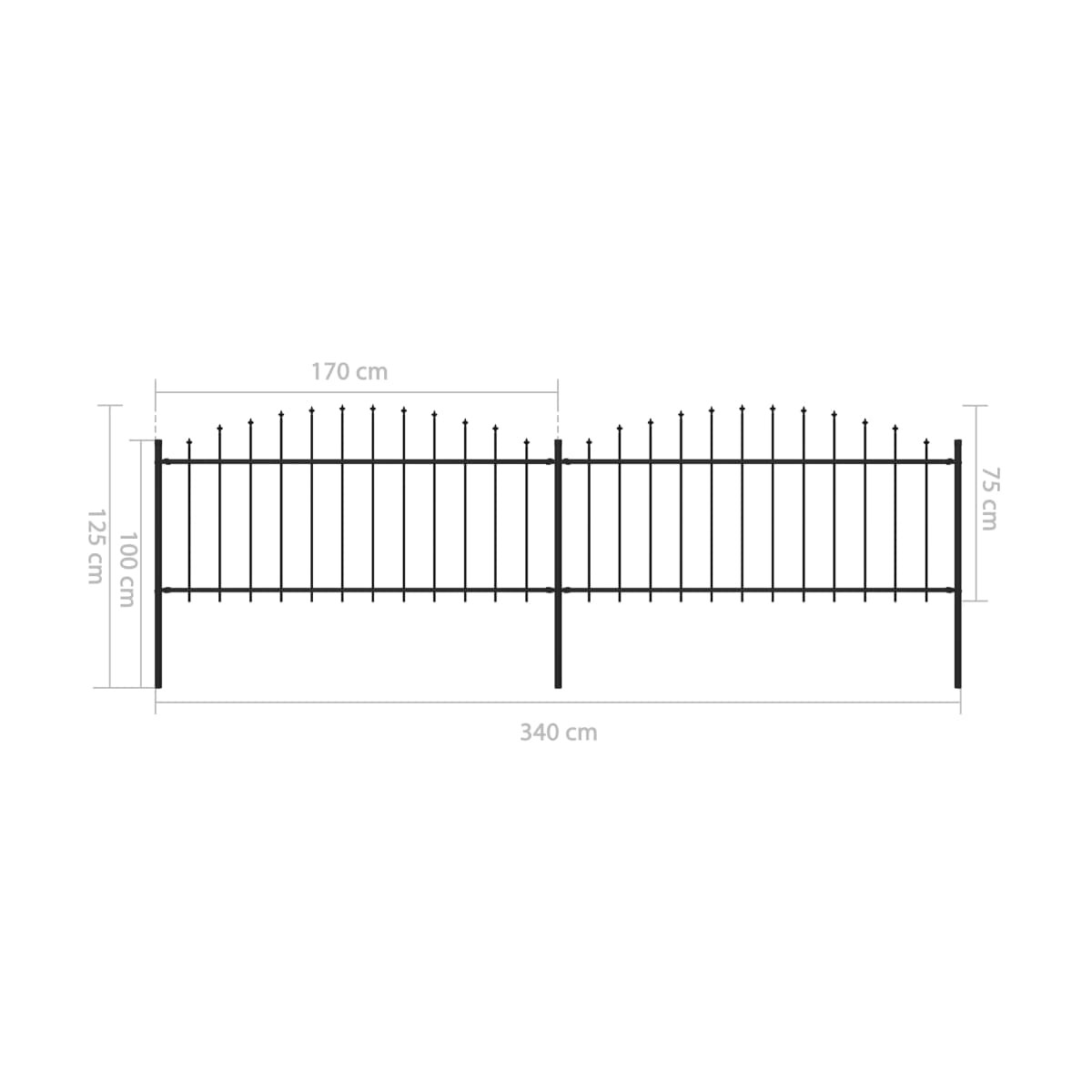 ¡Cree una barrera segura alrededor de su propiedad con nuestra cerca de jardín premium! Esta valla de jardín de acero de alta calidad, que consta de 2 paneles de valla y 3 postes, tiene una longitud total de 3,4 metros. Formará una robusta barrera perimetral, segura y sin necesidad de mantenimiento para su jardín, hogar o propiedad comercial. Fabricada en acero resistente, la valla es extremadamente estable, robusta y duradera. Además, con barras verticales rematadas con puntas de lanza y un fuerte refuerzo horizontal que fortalecerá la estructura, nuestra cerca de jardín proporcionará un alto grado de privacidad y seguridad. El panel de la cerca es fácil de montar.