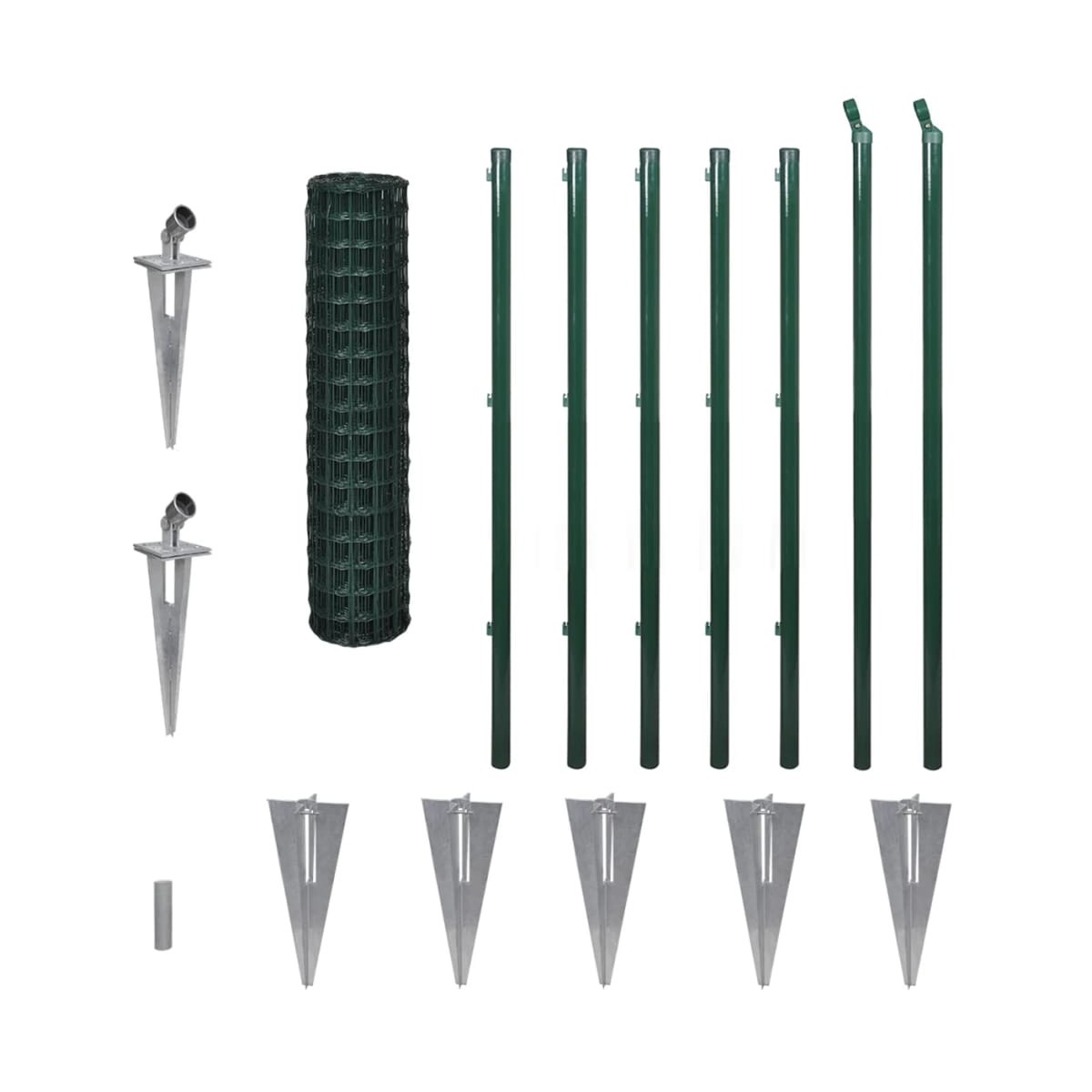 Este conjunto de Euro-Valla con estacas de tierra contiene todo lo necesario para erigir una valla resistente y de fácil montaje. Se puede usar como valla de perímetro común o como barrera para cercados de animales o elementos de jardín. El conjunto se entrega con postes, accesorios de instalación que incluyen tapas de postes, soportes de cable y tornillos. Los anclajes de estaca le permiten sujetar los postes sin necesidad de excavar agujeros. El conjunto de valla tiene una construcción fuerte. La malla de alambre con revestimiento de PVC es resistente a la intemperie, corrosión y radiación UV. Este conjunto de valla de jardín se puede instalar de forma rápida y fácil.