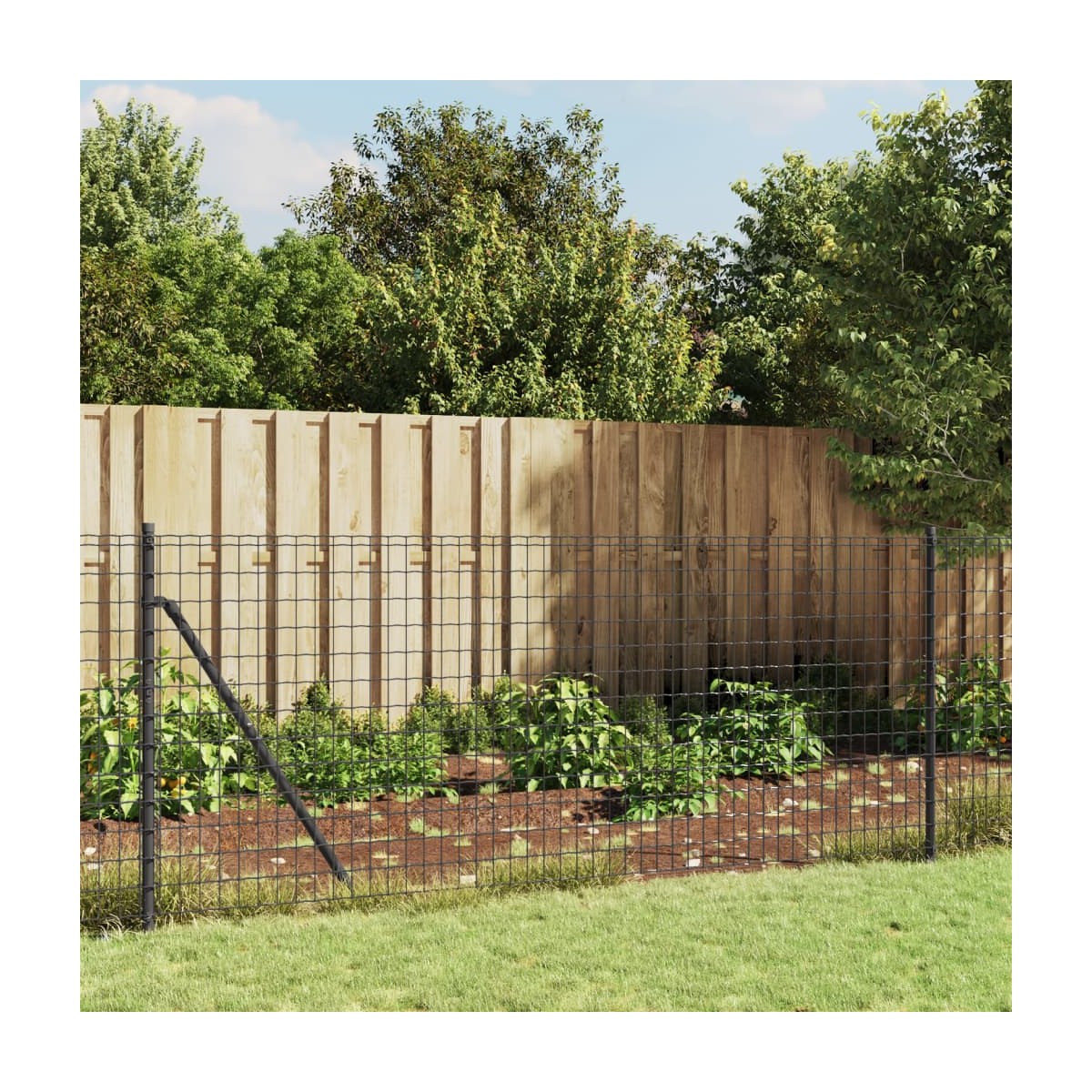 Esta versátil cerca de alambre con brida es ideal para crear una barrera segura y duradera alrededor de tu propiedad. También se puede utilizar para construir un recinto para animales. Material duradero: El acero es un material muy duro y fuerte. Ofrece solidez y estabilidad. La galvanización brinda una mejor protección contra la corrosión y es útil para productos que se usarán al aire libre y en entornos hostiles.Recubrimiento de PVC: La cerca del jardín lleva un recubrimiento de PVC en la superficie, por lo que es resistente a los rayos UV, al óxido y al desgaste.Diseño entrelazado: El diseño entrelazado hace que esta cerca de jardín no sólo sea flexible, sino también muy duradera y difícil de romper. Puedes cortarla al tamaño que desees.