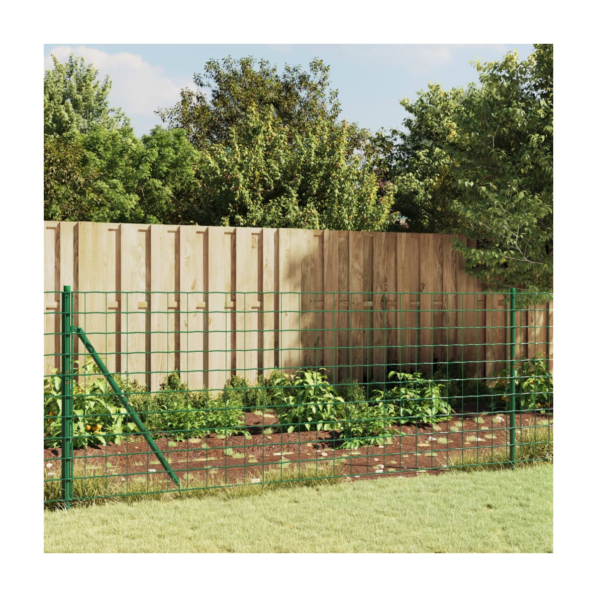 Esta versátil cerca de alambre con brida es ideal para crear una barrera segura y duradera alrededor de tu propiedad. También se puede utilizar para construir un recinto para animales. Material duradero: El acero es un material muy duro y fuerte. Ofrece solidez y estabilidad. La galvanización brinda una mejor protección contra la corrosión y es útil para productos que se usarán al aire libre y en entornos hostiles.Recubrimiento de PVC: La cerca del jardín lleva un recubrimiento de PVC en la superficie, por lo que es resistente a los rayos UV, al óxido y al desgaste.Diseño entrelazado: El diseño entrelazado hace que esta cerca de jardín no sólo sea flexible, sino también muy duradera y difícil de romper. Puedes cortarla al tamaño que desees.