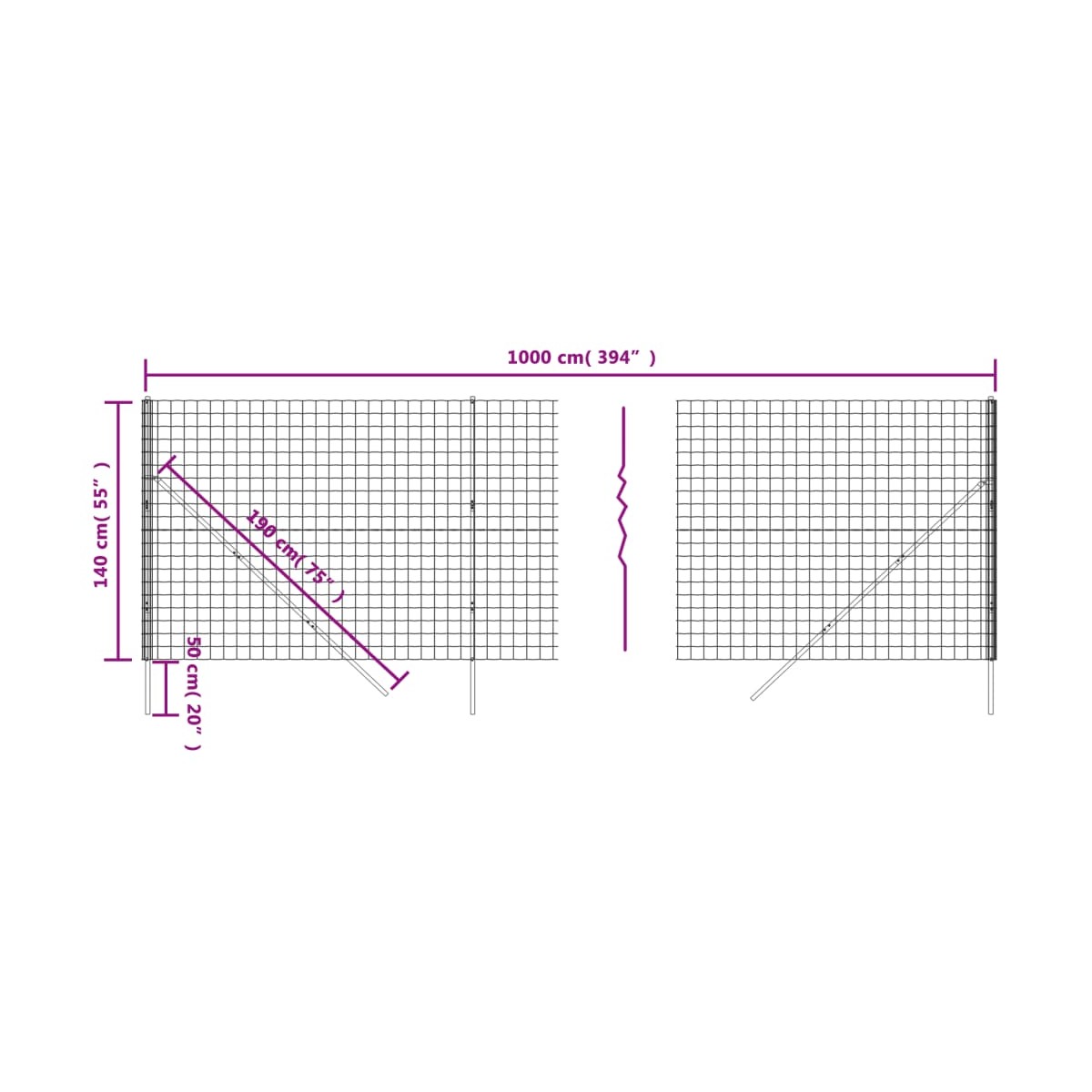 - Dimensiones de la cerca: 1,4 x 10 m (alto x largo)