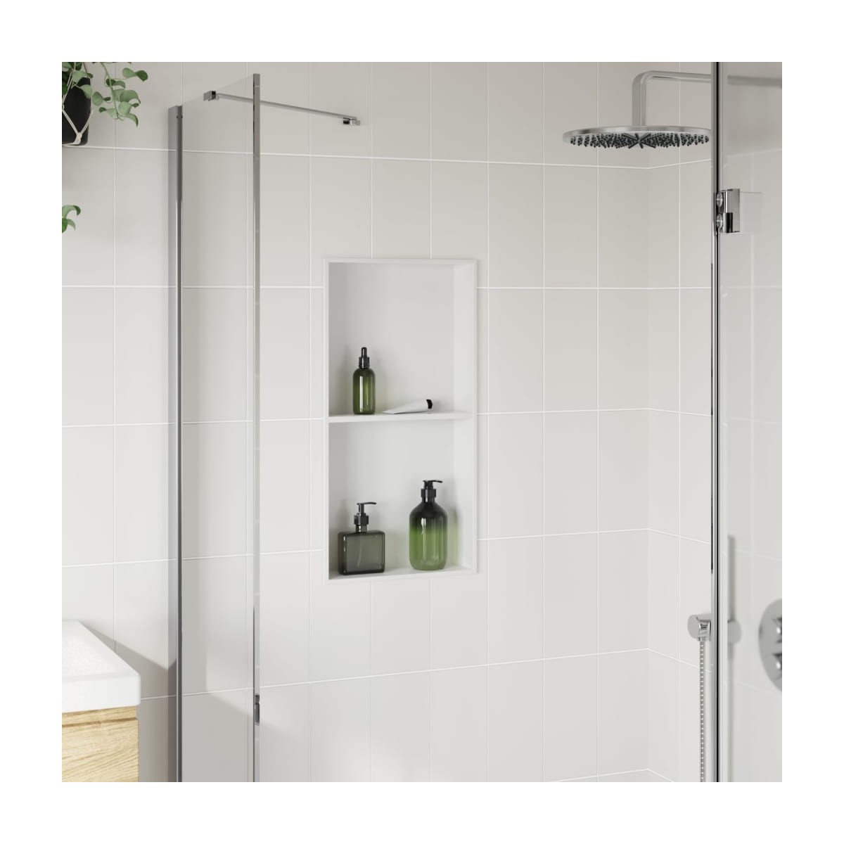 ¡Utiliza esta hornacina de ducha para hacer que tu hogar esté limpio y organizado! Material duradero: La hornacina de ducha está hecha de acero inoxidable, que es duradero y resistente a la corrosión. Se puede utilizar durante mucho tiempo, incluso en condiciones de alta humedad.Amplio espacio de almacenaje: La hornacina de ducha incorporada proporciona un amplio espacio de almacenaje para tus artículos de baño u otros artículos que necesites, y además no ocupa un valioso espacio en el suelo.Fácil de usar y mantener: Gracias a su superficie lisa y diseño abierto, es fácil de alcanzar objetos y de limpiar a diario.Amplios usos: La hornacina de ducha se puede instalar en cualquier lugar según tus necesidades, adecuado para un cuarto de baño, salón, dormitorio, cocina, etc.