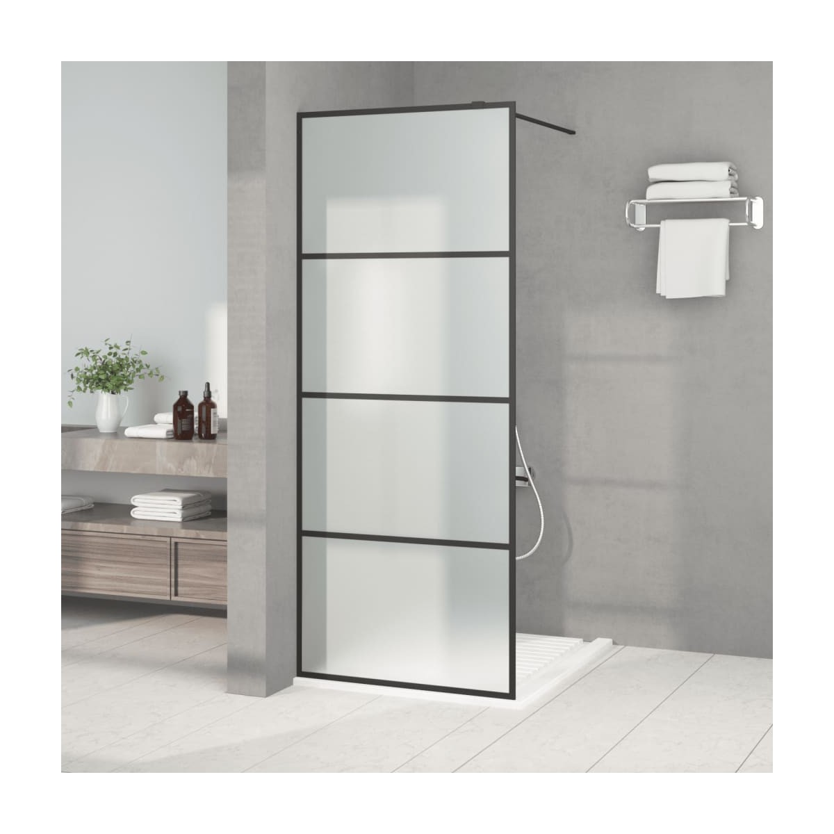 ¡Da una estética fresca al baño con nuestra moderna mampara de ducha con estante! Material resistente: Con una estructura inteligente, el vidrio ESG es más resistente y duradero que cualquier otro...