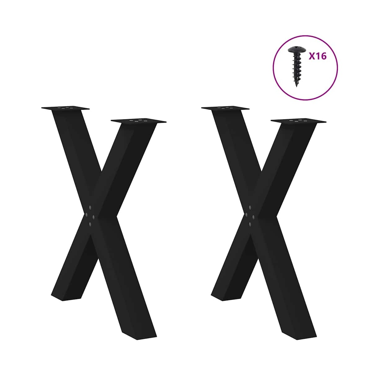 Estas patas para mesa de comedor combinan forma y función. Son una opción ideal para personalizar tu mesa de comedor. Material duradero: esta pata de mesa de mobiliario está hecha de acero con recubrimiento en polvo, lo que la hace resistente y duradera.Estructura robusta: el diseño en forma de X de la pata de la mesa de metal garantiza que pueda soportar una mesa pesada.Diseño práctico: esta pata de escritorio incluye niveladores de pie ajustables, lo que garantiza la estabilidad incluso en suelos irregulares y minimiza los arañazos en el suelo. Además, el soporte cuenta con orificios pretaladrados y tornillos incluidos en la entrega, que se pueden utilizar para fijar la pata al tablero de la mesa (no incluidos), lo que facilita el montaje.Estética moderna: La pata de la mesa tiene líneas limpias y un diseño geométrico que mejora el aspecto general del mueble. Además, combina bien con cualquier tablero de mesa de un tamaño adecuado. Información útil:La entrega solo contiene las patas de la mesa, el tablero no está incluido.