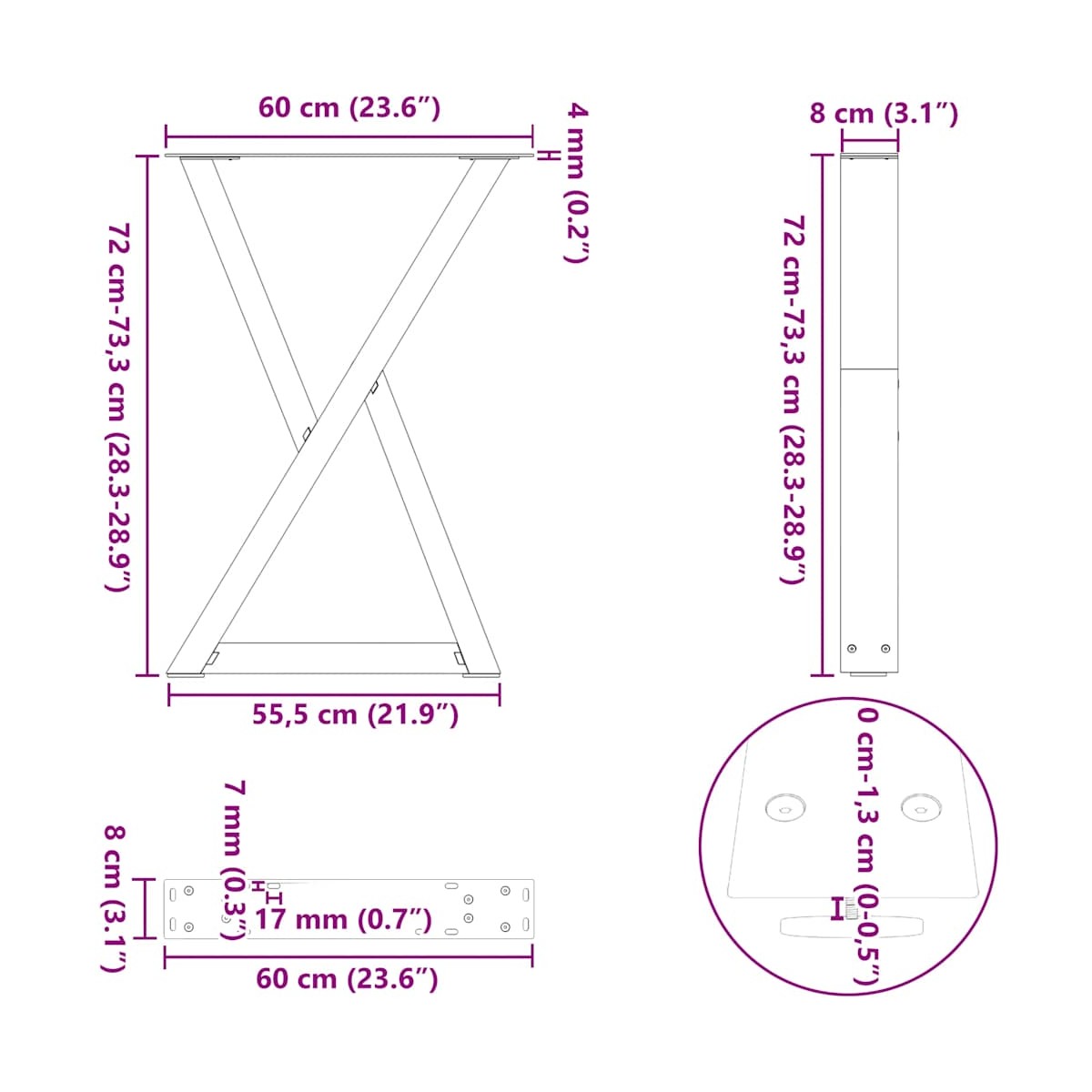 - Tamaño total: 60 x (72-73,3)) cm (ancho x alto)