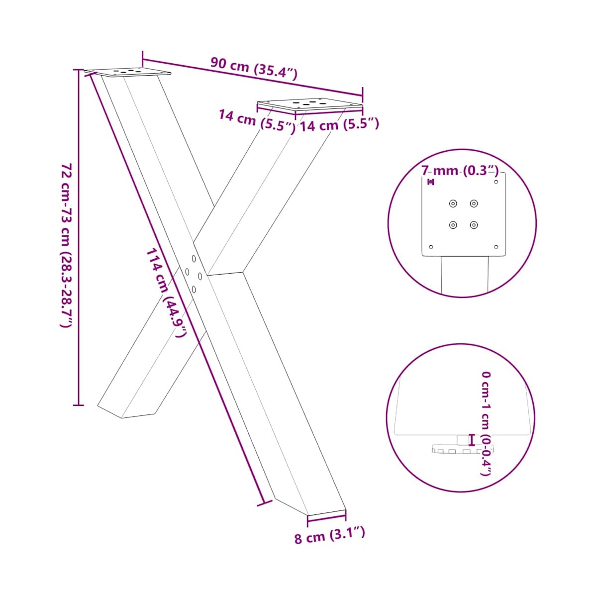Estas patas para mesa de comedor combinan forma y función. Son una opción ideal para personalizar tu mesa de comedor. Material duradero: esta pata de mesa de mobiliario está hecha de acero con recubrimiento en polvo, lo que la hace resistente y duradera.Estructura robusta: el diseño en forma de X de la pata de la mesa de metal garantiza que pueda soportar una mesa pesada.Diseño práctico: esta pata de escritorio incluye niveladores de pie ajustables, lo que garantiza la estabilidad incluso en suelos irregulares y minimiza los arañazos en el suelo. Además, el soporte cuenta con orificios pretaladrados y tornillos incluidos en la entrega, que se pueden utilizar para fijar la pata al tablero de la mesa (no incluidos), lo que facilita el montaje.Estética moderna: La pata de la mesa tiene líneas limpias y un diseño geométrico que mejora el aspecto general del mueble. Además, combina bien con cualquier tablero de mesa de un tamaño adecuado. Información útil:La entrega solo contiene las patas de la mesa, el tablero no está incluido.