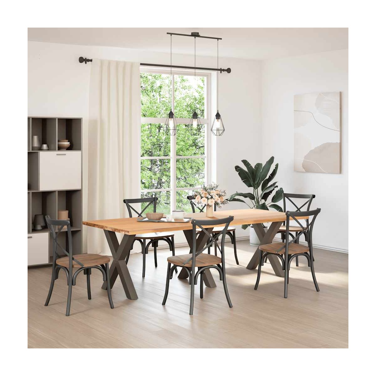 Estas patas para mesa de comedor combinan forma y función. Son una opción ideal para personalizar tu mesa de comedor. Material duradero: esta pata de mesa de mobiliario está hecha de acero con recubrimiento en polvo, lo que la hace resistente y duradera.Estructura robusta: el diseño en forma de X de la pata de la mesa de metal garantiza que pueda soportar una mesa pesada.Diseño práctico: esta pata de escritorio incluye niveladores de pie ajustables, lo que garantiza la estabilidad incluso en suelos irregulares y minimiza los arañazos en el suelo. Además, el soporte cuenta con orificios pretaladrados y tornillos incluidos en la entrega, que se pueden utilizar para fijar la pata al tablero de la mesa (no incluidos), lo que facilita el montaje.Estética moderna: La pata de la mesa tiene líneas limpias y un diseño geométrico que mejora el aspecto general del mueble. Además, combina bien con cualquier tablero de mesa de un tamaño adecuado. Información útil:La entrega solo contiene las patas de la mesa, el tablero no está incluido.
