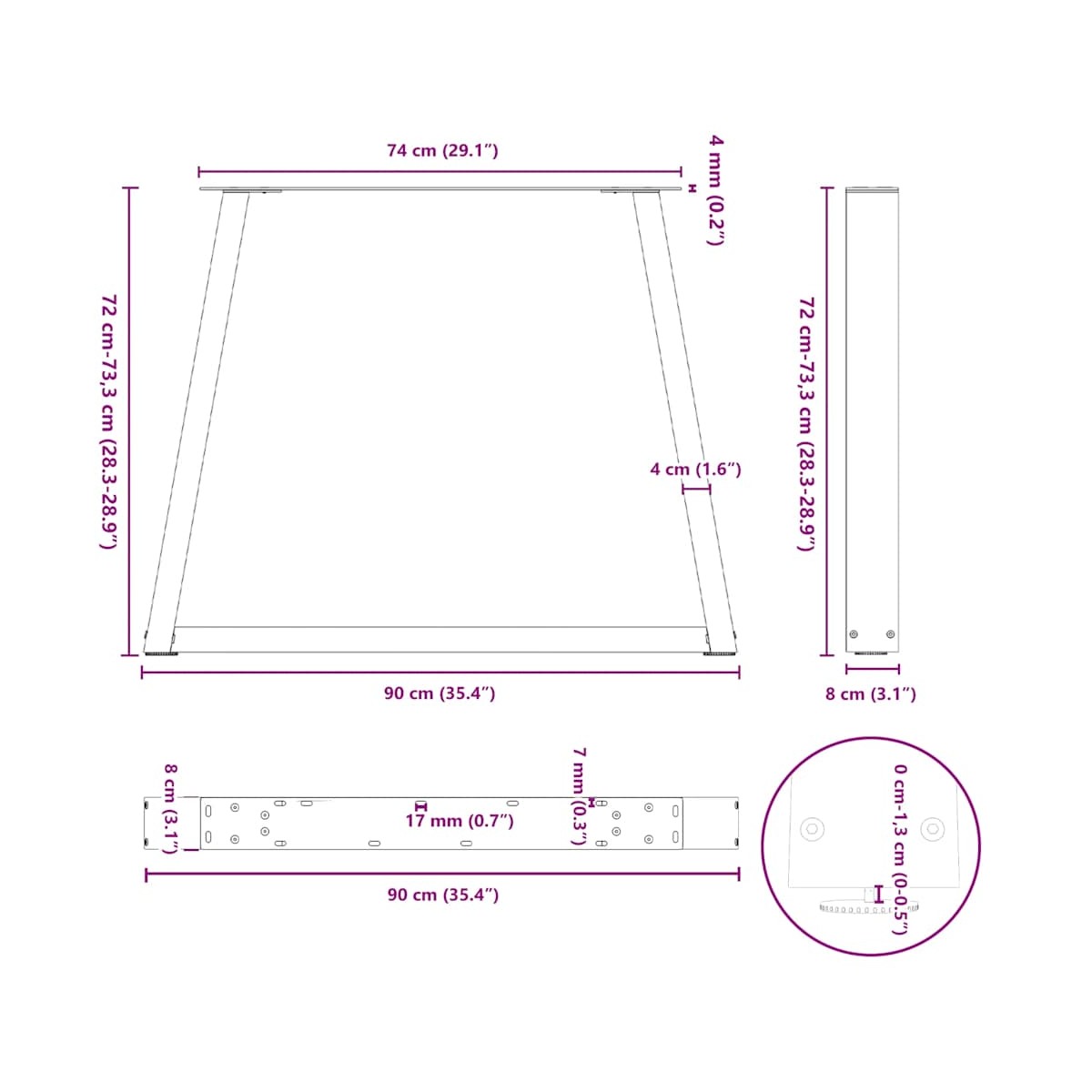Estas patas para mesa de comedor combinan forma y función. Son una opción ideal para personalizar tu mesa de comedor. Material duradero: esta pata de mesa de comedor está hecha de acero con recubrimiento en polvo, lo que la hace resistente y duradera.Diseño práctico: esta pata de mesa de comedor incluye niveladores de pie ajustables, lo que garantiza la estabilidad incluso en suelos irregulares y minimiza los arañazos en el suelo. Además, el soporte cuenta con orificios pretaladrados y tornillos incluidos en la entrega, que se pueden utilizar para fijar la pata al tablero de la mesa (no incluidos), lo que facilita el montaje.Estética moderna: La pata de la mesa ofrece un aspecto elegante y contemporáneo. Sus líneas limpias y su diseño geométrico realzan el aspecto general del mueble. Información útil:La entrega solo contiene las patas de la mesa, el tablero no está incluido.