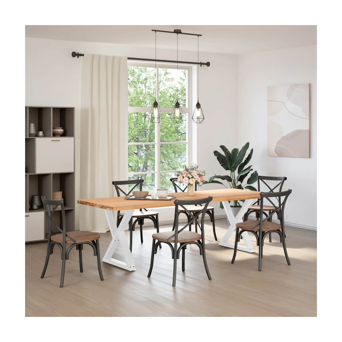 Estas patas para mesa de comedor combinan forma y función. Son una opción ideal para personalizar tu mesa de comedor. Material duradero: esta pata de mesa de comedor está hecha de acero con recubrimiento en polvo, lo que la hace resistente y duradera.Diseño práctico: esta pata de mesa de comedor incluye niveladores de pie ajustables, lo que garantiza la estabilidad incluso en suelos irregulares y minimiza los arañazos en el suelo. Además, el soporte cuenta con orificios pretaladrados y tornillos incluidos en la entrega, que se pueden utilizar para fijar la pata al tablero de la mesa (no incluidos), lo que facilita el montaje.Estética moderna: La pata de la mesa ofrece un aspecto elegante y contemporáneo. Sus líneas limpias y su diseño geométrico realzan el aspecto general del mueble. Información útil:La entrega solo contiene las patas de la mesa, el tablero no está incluido.