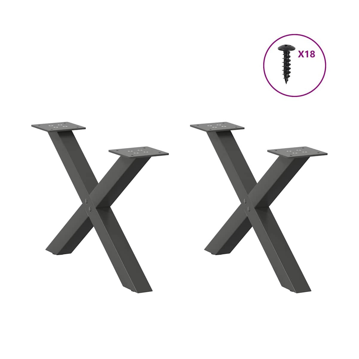 Estas patas para mesa de centro combinan forma y función. Son una opción ideal para personalizar tu mesa de centro. Material duradero: esta pata de mesa de mobiliario está hecha de acero con recubrimiento en polvo, lo que la hace resistente y duradera.Estructura robusta: el diseño en forma de X de la pata de la mesa de metal garantiza que pueda soportar una mesa pesada.Diseño práctico: esta pata de escritorio incluye niveladores de pie ajustables, lo que garantiza la estabilidad incluso en suelos irregulares y minimiza los arañazos en el suelo. Además, el soporte cuenta con orificios pretaladrados y tornillos incluidos en la entrega, que se pueden utilizar para fijar la pata al tablero de la mesa (no incluidos), lo que facilita el montaje.Estética moderna: La pata de la mesa tiene líneas limpias y un diseño geométrico que mejora el aspecto general del mueble. Además, combina bien con cualquier tablero de mesa de un tamaño adecuado. Información útil:La entrega solo contiene las patas de la mesa, el tablero no está incluido.