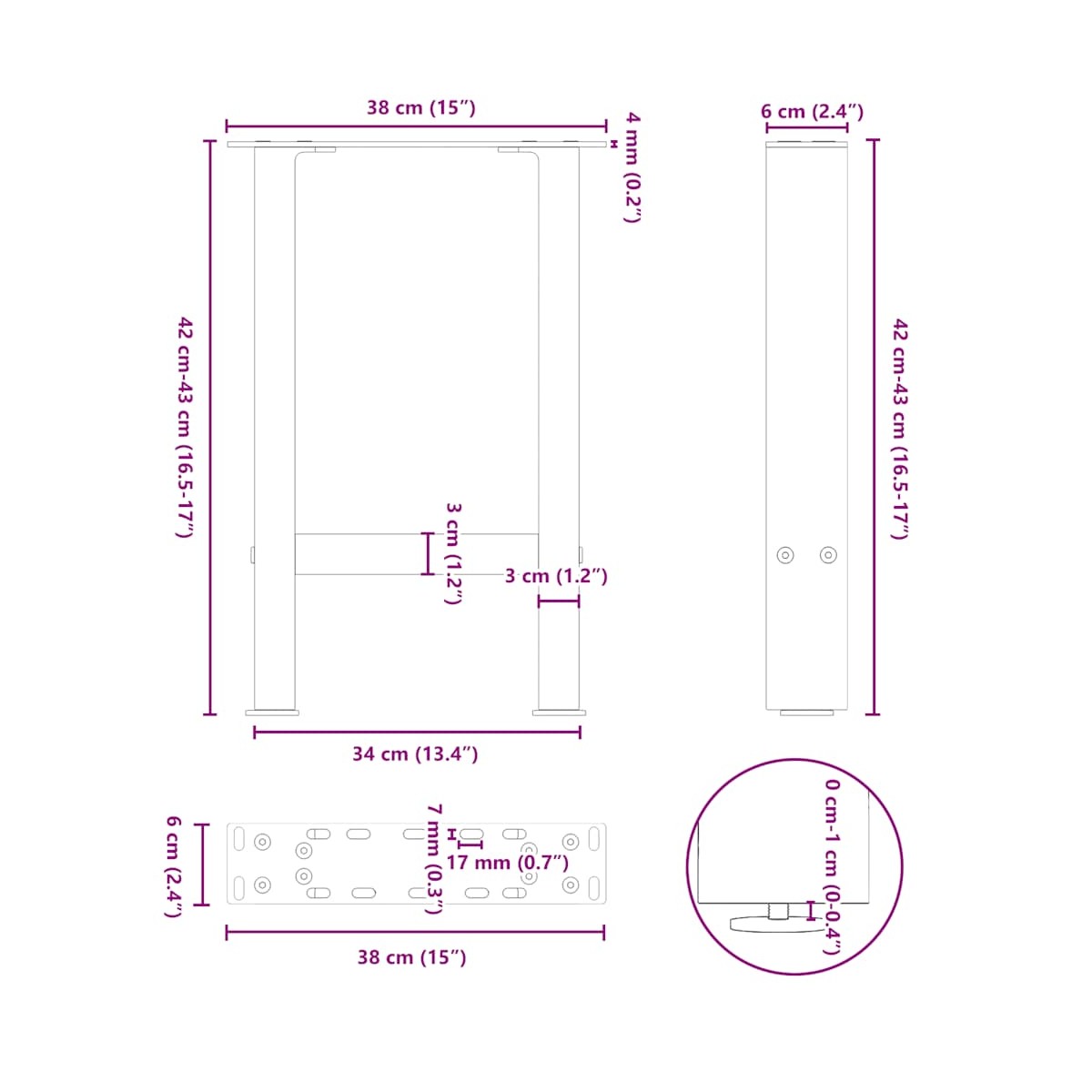 Estas patas para mesa de centro combinan forma y función. Son una opción ideal para personalizar tu mesa de centro. Material duradero: esta pata de mesa de café está hecha de acero con recubrimiento en polvo, lo que la hace resistente y duradera.Estructura robusta: el diseño cuadrado de la pata de la mesa de café garantiza que pueda soportar una mesa pesada.Diseño práctico: esta pata para mesa de centro incluye niveladores de pie ajustables, lo que garantiza la estabilidad incluso en suelos irregulares y minimiza los arañazos en el suelo. Además, el soporte cuenta con orificios pretaladrados y tornillos incluidos en la entrega, que se pueden utilizar para fijar la pata al tablero de la mesa (no incluidos), lo que facilita el montaje.Estética moderna: La pata de la mesa tiene líneas limpias y un diseño geométrico que mejora el aspecto general del mueble. Además, combina bien con cualquier tablero de mesa de un tamaño adecuado.Información útil:La entrega solo contiene las patas de la mesa, el tablero no está incluido.