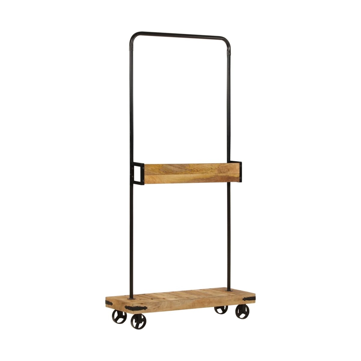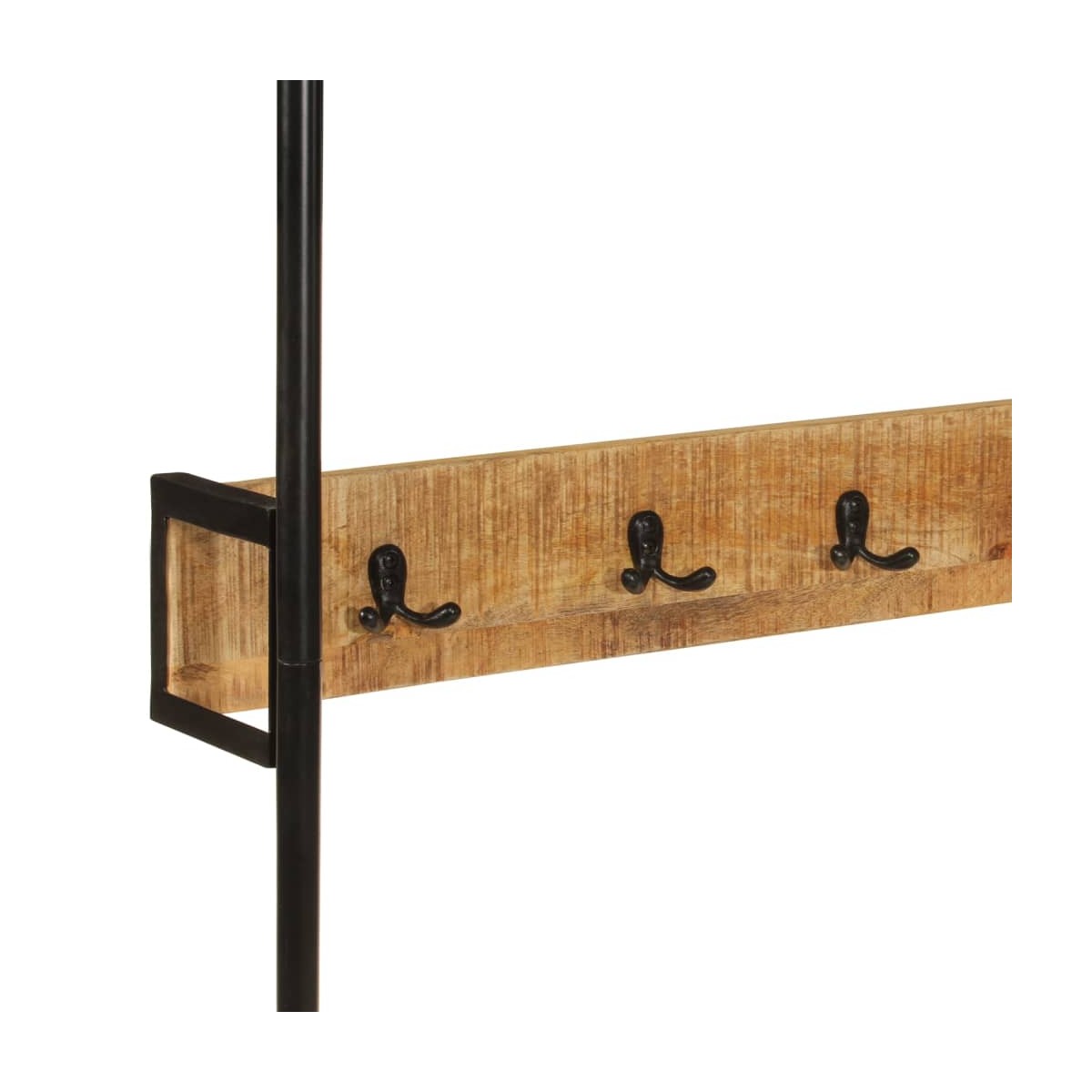 ¡Haz limpieza de armario y escoge fácilmente un conjunto de ropa con este perchero de madera! Madera maciza de mango: La madera maciza de mango es una madera dura, tropical y resistente, que sirve para hacer muebles robustos. Las bonitas vetas de la madera hacen que cada mueble sea ligeramente diferente al resto. Estructura de hierro: La estructura de hierro añade un estilo tranquilo a tu hogar además de garantizar la estabilidad. Amplio espacio de almacenaje: Este perchero viene con un riel de ropa para proporcionar un montón de espacio para colgar la ropa, además de 4 ganchos dobles para colgar los abrigos, bolsos, sombreros, bufandas y otras pertenencias.Diseño elegante y compacto: Las líneas limpias y el diseño minimalista hacen que el perchero se integre perfectamente en la habitación y también es perfecto para espacios pequeños gracias al tamaño compacto. Información útil:Cada artículo es único, con variaciones de color y veta. La entrega es aleatoria garantizando la exclusividad y la individualidad del producto.