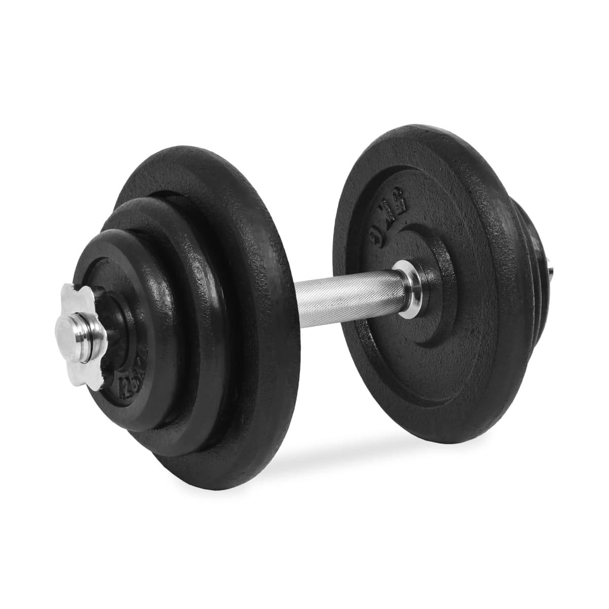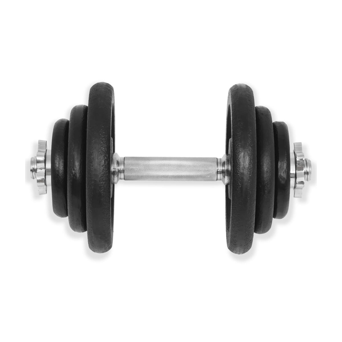 Este versátil juego de mancuernas es perfecto para el pecho, los bíceps, los brazos, los tríceps y los músculos de la espalda. Incluye cuatro discos de pesas de 5 kg, cuatro discos de pesas de 2,5 kg y dos barras de pesas de acero de 2,25 kg, y tiene un peso total de unos 40 kg. Este conjunto permite a los usuarios seleccionar variablemente los pesos que desean levantar para diferentes ejercicios. Estas pesas están hechas de hierro fundido que se le ha dado un acabado de capa de polvo esmaltado al horno y se pueden fijar fácilmente a las barras con los collares de bloqueo incluidos. El peso está claramente sellado en cada pesa para una identificación rápida y fácil.