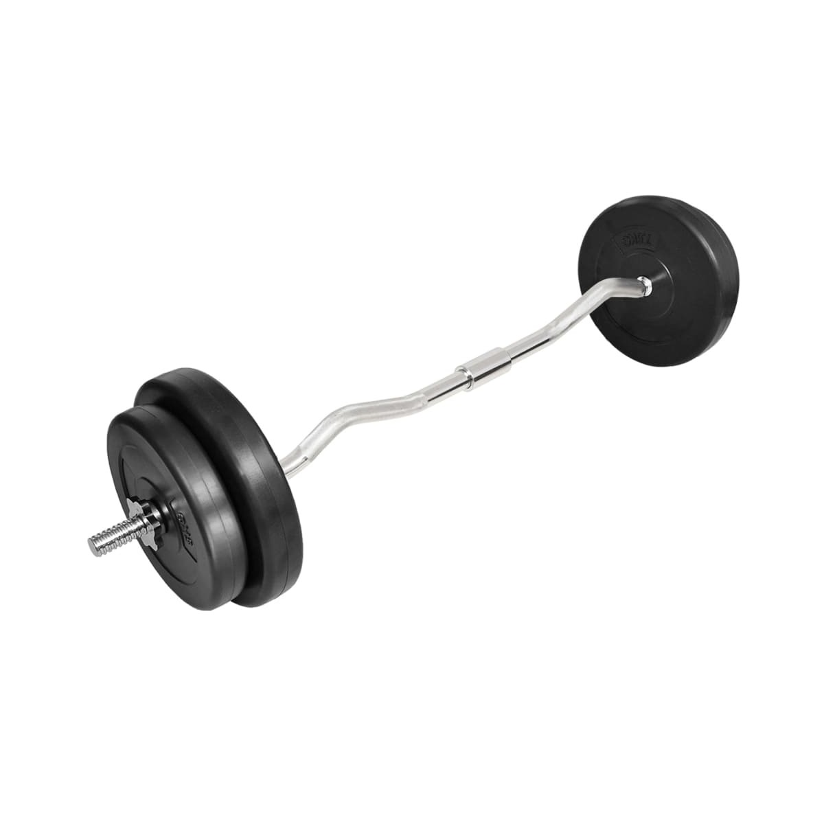 Esta barra de curl con pesas es ideal para centros de entrenamiento domésticos o personales. Este conjunto consta de una barra de curl de 5 kg y discos de pesas con un peso total de 25 kg. El juego de barras de curl se puede combinar con nuestros bancos de musculación y/o nuestros juegos de mancuernas para un efecto de entrenamiento aún mejor. La longitud de la barra de curl es de 120 cm. Puedes hacer fácilmente varias combinaciones con los cuatro platos, 2 x 7,5 kg y 2 x 5 kg. Los collares de tornillo en forma de estrella aseguran que los pesos permanezcan en su sitio. Las empuñaduras de la barra tienen una estructura especial para un agarre óptimo durante el ejercicio. Las pesas tienen una carcasa de plástico que reduce el ruido.