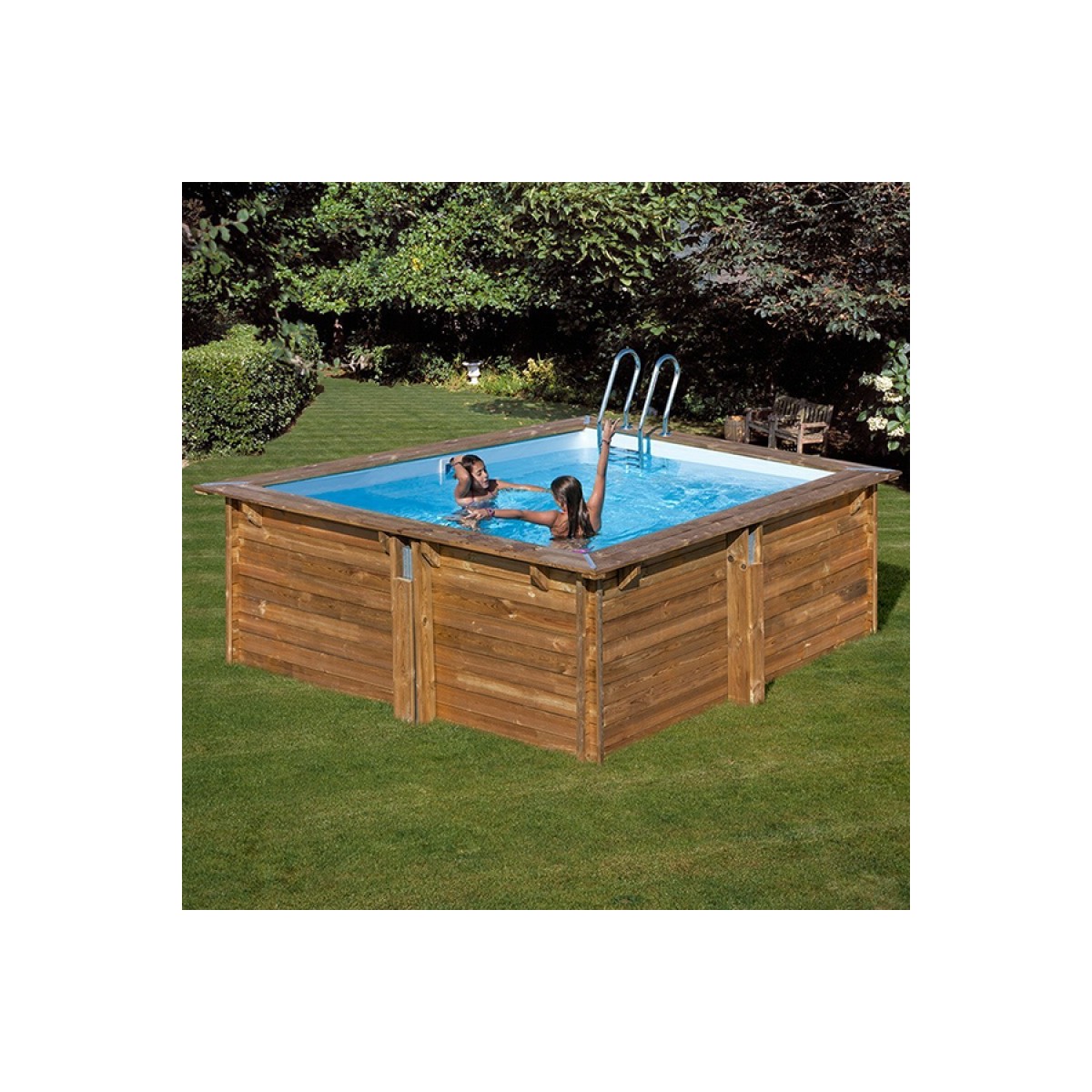 Piscina de madera cuadrada, modelo Sunbay con medidas 305X305X119, fabricada por GRE