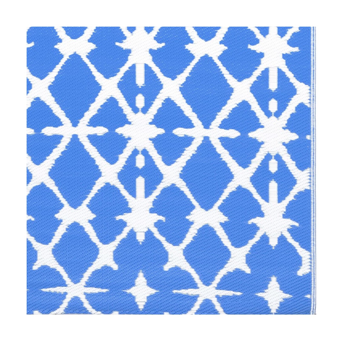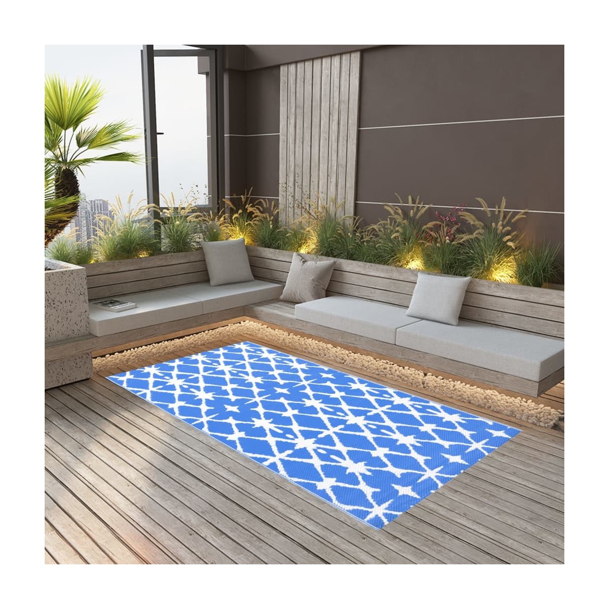 Alfombra de exterior ARAKIL azul y blanca 190x290 cm PP