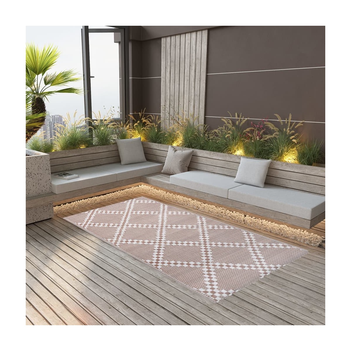 ¡Esta moderna alfombra de exterior es un excelente aporte decorativo para tu patio o terraza! Colócala en la zona de descanso en tu balcón, terraza o patio para que sea más acogedor al instante....