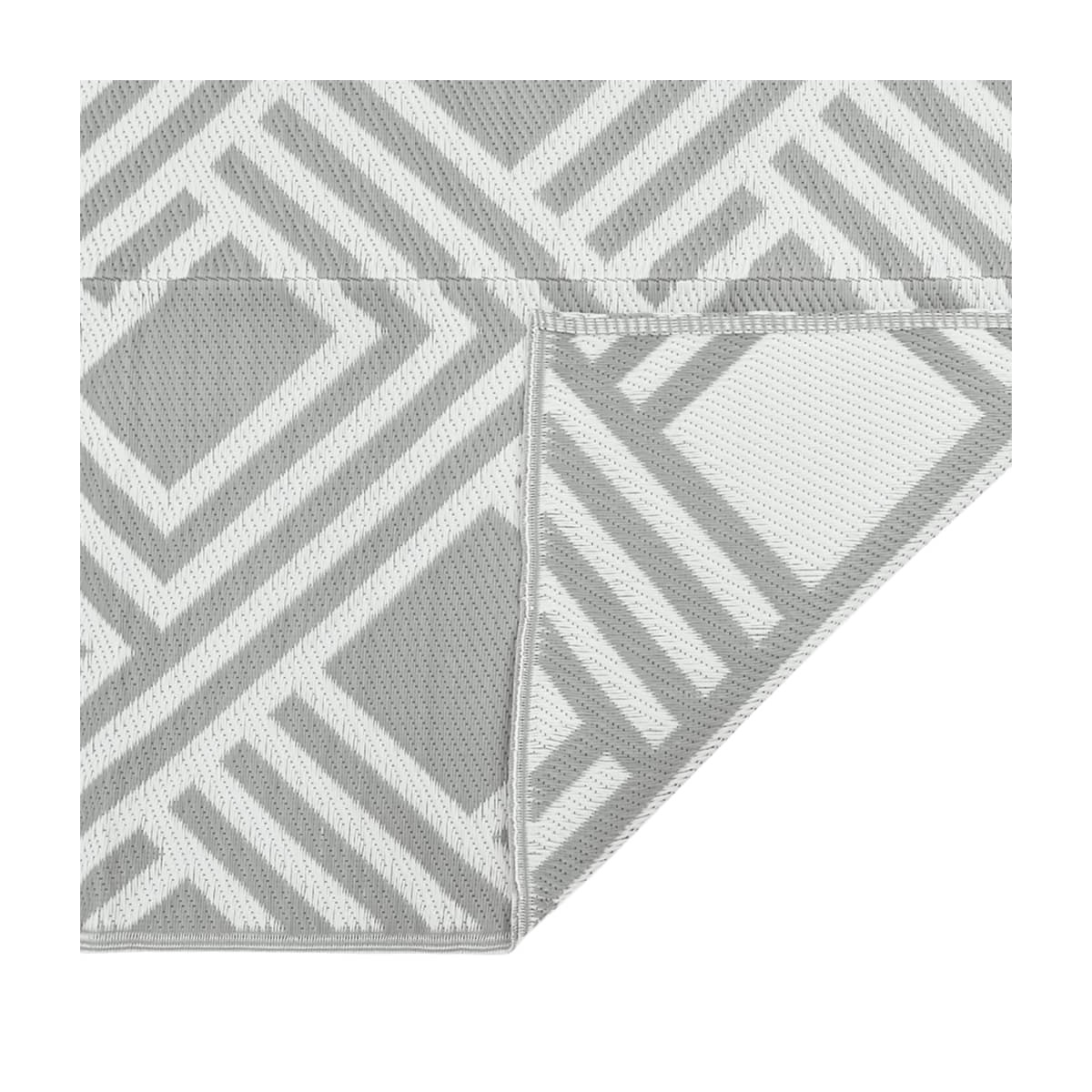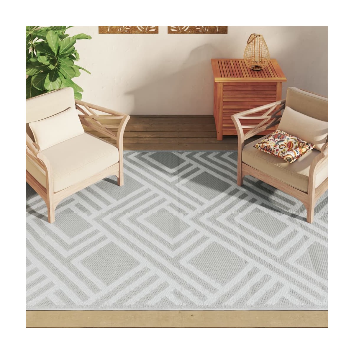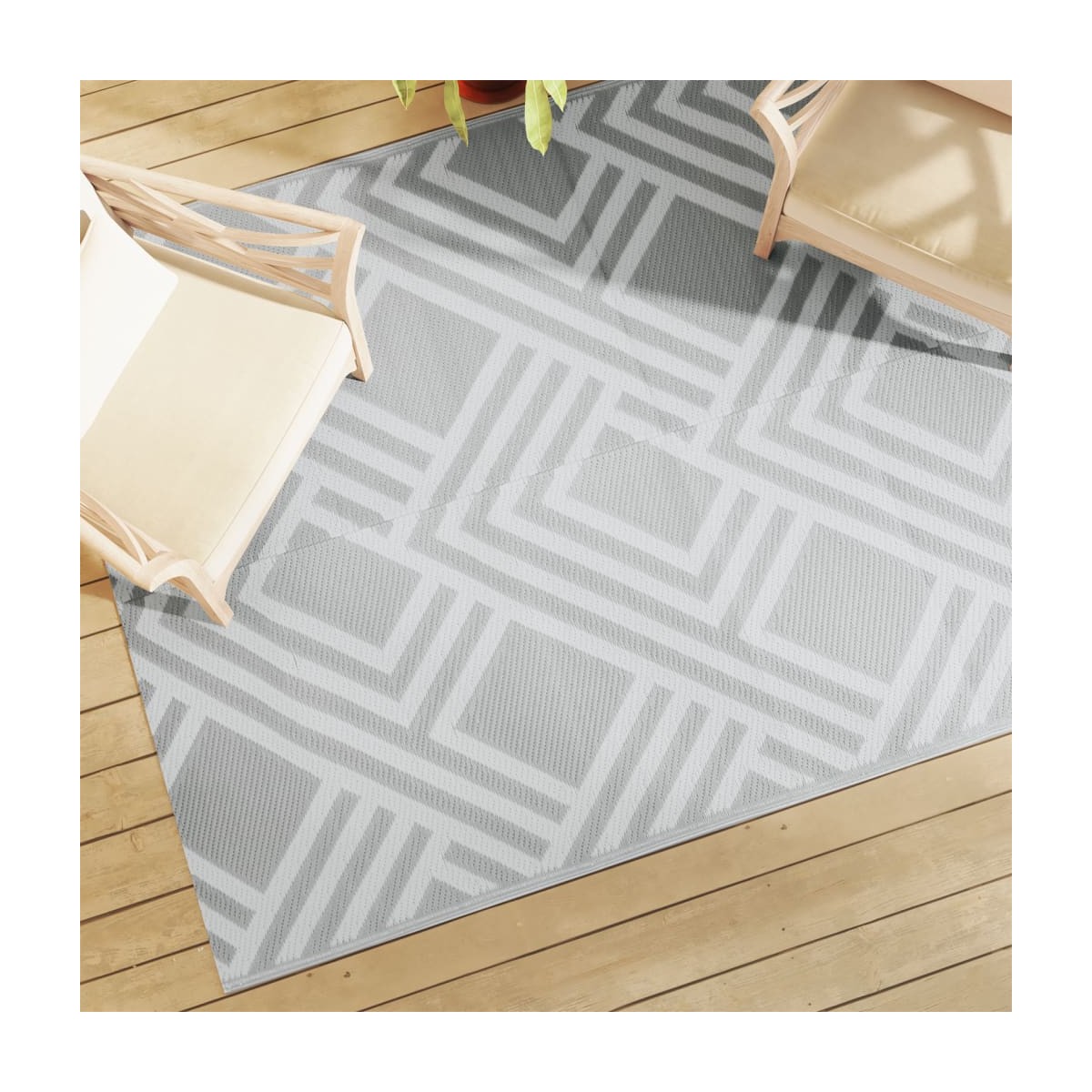 ¡Esta moderna alfombra de exterior es un excelente aporte decorativo para tu patio o terraza! Colócala en la zona de descanso en tu balcón, terraza o patio para que sea más acogedor al instante. Duradera y resistente a los rayos UV: Hecha de polipropileno (PP), esta alfombra está firmemente tejida para ofrecer durabilidad, portabilidad y bajo mantenimiento. Y es resistente a los rayos UV, lo que evita que se decolore o sufra otros daños por el sol.Diseño reversible: Diseñada para ser usada por ambos lados, esta alfombra de jardín tiene dos opciones para que puedas combinarla con la decoración. Si uno de los lados se mancha o te aburres del dibujo, puedes darle la vuelta para dar al suelo un aspecto renovado.Fácil de limpiar: Esta alfombra de exterior es fácil de limpiar. Basta con sacudirla y limpiarla con un paño húmedo, o enjuagarla con una manguera y secarla al aire.Portátil y fácil de guardar: Gracias a su ligereza y a las costuras en el centro, puedes plegar o desplegar libremente la alfombra en una forma ideal para transportarla y guardarla fácilmente cuando no esté en uso.Amplios usos: Esta alfombra de área es adecuada para uso en interiores y al aire libre, incluyendo la cubierta, patio, balcón, jardín, terraza, etc. Información útil:Para una durabilidad y belleza óptimas, te sugerimos que laves a mano la alfombra de exterior a temperatura ambiente.