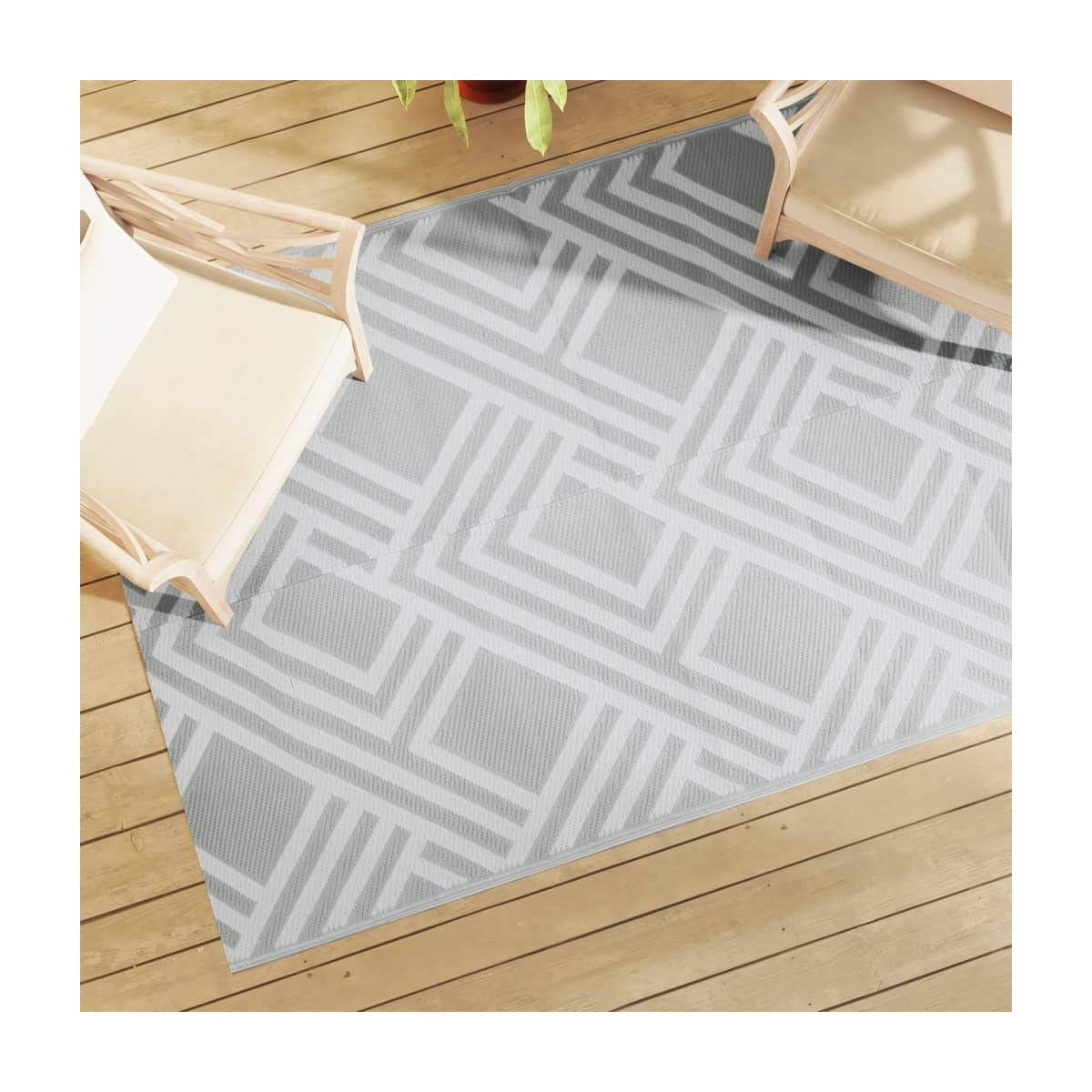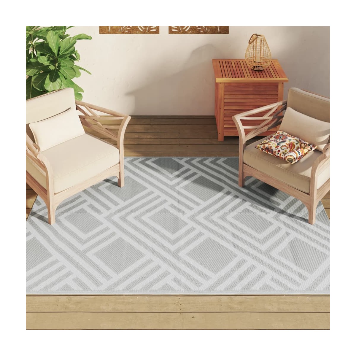 ¡Esta moderna alfombra de exterior es un excelente aporte decorativo para tu patio o terraza! Colócala en la zona de descanso en tu balcón, terraza o patio para que sea más acogedor al instante. Duradera y resistente a los rayos UV: Hecha de polipropileno (PP), esta alfombra está firmemente tejida para ofrecer durabilidad, portabilidad y bajo mantenimiento. Y es resistente a los rayos UV, lo que evita que se decolore o sufra otros daños por el sol.Diseño reversible: Diseñada para ser usada por ambos lados, esta alfombra de jardín tiene dos opciones para que puedas combinarla con la decoración. Si uno de los lados se mancha o te aburres del dibujo, puedes darle la vuelta para dar al suelo un aspecto renovado.Fácil de limpiar: Esta alfombra de exterior es fácil de limpiar. Basta con sacudirla y limpiarla con un paño húmedo, o enjuagarla con una manguera y secarla al aire.Portátil y fácil de guardar: Gracias a su ligereza y a las costuras en el centro, puedes plegar o desplegar libremente la alfombra en una forma ideal para transportarla y guardarla fácilmente cuando no esté en uso.Amplios usos: Esta alfombra de área es adecuada para uso en interiores y al aire libre, incluyendo la cubierta, patio, balcón, jardín, terraza, etc. Información útil:Para una durabilidad y belleza óptimas, te sugerimos que laves a mano la alfombra de exterior a temperatura ambiente.