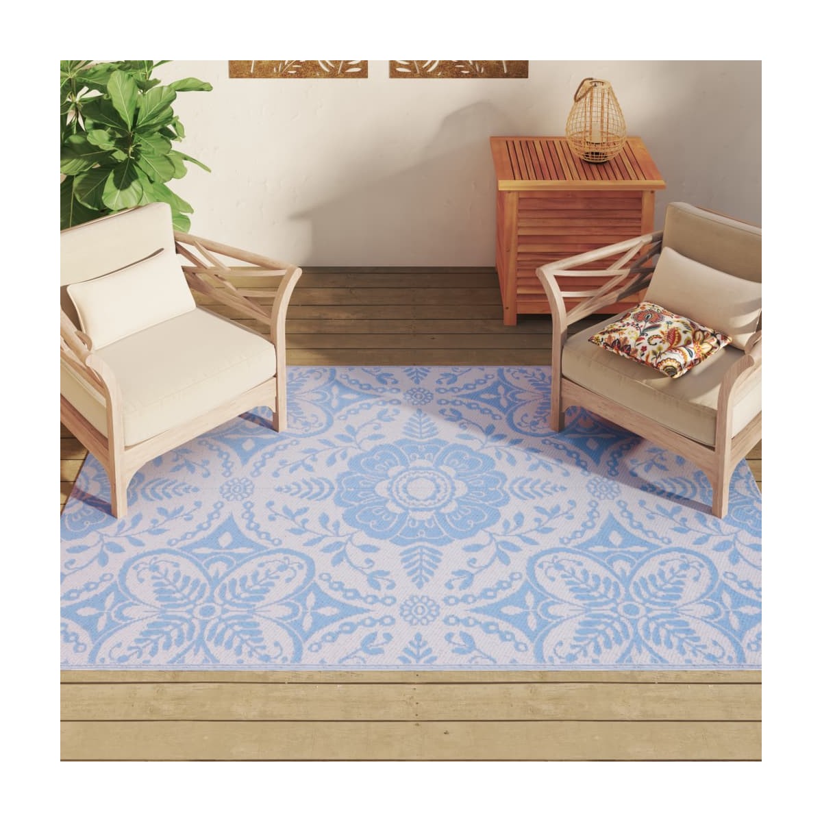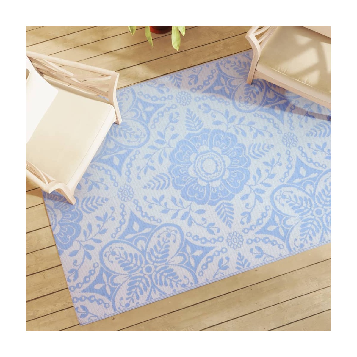 ¡Esta moderna alfombra de exterior es un excelente aporte decorativo para tu patio o terraza! Colócala en la zona de descanso en tu balcón, terraza o patio para que sea más acogedor al instante. Duradera y resistente a los rayos UV: Hecha de polipropileno (PP), esta alfombra está firmemente tejida para ofrecer durabilidad, portabilidad y bajo mantenimiento. Y es resistente a los rayos UV, lo que evita que se decolore o sufra otros daños por el sol.Diseño reversible: Diseñada para ser usada por ambos lados, esta alfombra de jardín tiene dos opciones para que puedas combinarla con la decoración. Si uno de los lados se mancha o te aburres del dibujo, puedes darle la vuelta para dar al suelo un aspecto renovado.Fácil de limpiar: Esta alfombra de exterior es fácil de limpiar. Basta con sacudirla y limpiarla con un paño húmedo, o enjuagarla con una manguera y secarla al aire.Portátil y fácil de guardar: Gracias a su ligereza y a las costuras en el centro, puedes plegar o desplegar libremente la alfombra en una forma ideal para transportarla y guardarla fácilmente cuando no esté en uso.Amplios usos: Esta alfombra de área es adecuada para uso en interiores y al aire libre, incluyendo la cubierta, patio, balcón, jardín, terraza, etc. Información útil:Para una durabilidad y belleza óptimas, te sugerimos que laves a mano la alfombra de exterior a temperatura ambiente.