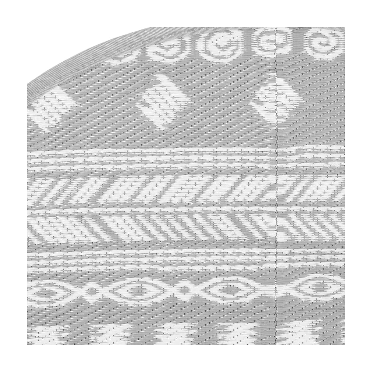 ¡Esta moderna alfombra de exterior es un excelente aporte decorativo para tu patio o terraza! Colócala en la zona de descanso en tu balcón, terraza o patio para que sea más acogedor al instante. Duradera y resistente a los rayos UV: Hecha de polipropileno (PP), esta alfombra está firmemente tejida para ofrecer durabilidad, portabilidad y bajo mantenimiento. Y es resistente a los rayos UV, lo que evita que se decolore o sufra otros daños por el sol.Diseño reversible: Diseñada para ser usada por ambos lados, esta alfombra de jardín tiene dos opciones para que puedas combinarla con la decoración. Si uno de los lados se mancha o te aburres del dibujo, puedes darle la vuelta para dar al suelo un aspecto renovado.Fácil de limpiar: Esta alfombra de exterior es fácil de limpiar. Basta con sacudirla y limpiarla con un paño húmedo, o enjuagarla con una manguera y secarla al aire.Portátil y fácil de guardar: Gracias a su ligereza y a las costuras en el centro, puedes plegar o desplegar libremente la alfombra en una forma ideal para transportarla y guardarla fácilmente cuando no esté en uso.Amplios usos: Esta alfombra de área es adecuada para uso en interiores y al aire libre, incluyendo la cubierta, patio, balcón, jardín, terraza, etc. Información útil:Para una durabilidad y belleza óptimas, te sugerimos que laves a mano la alfombra de exterior a temperatura ambiente.