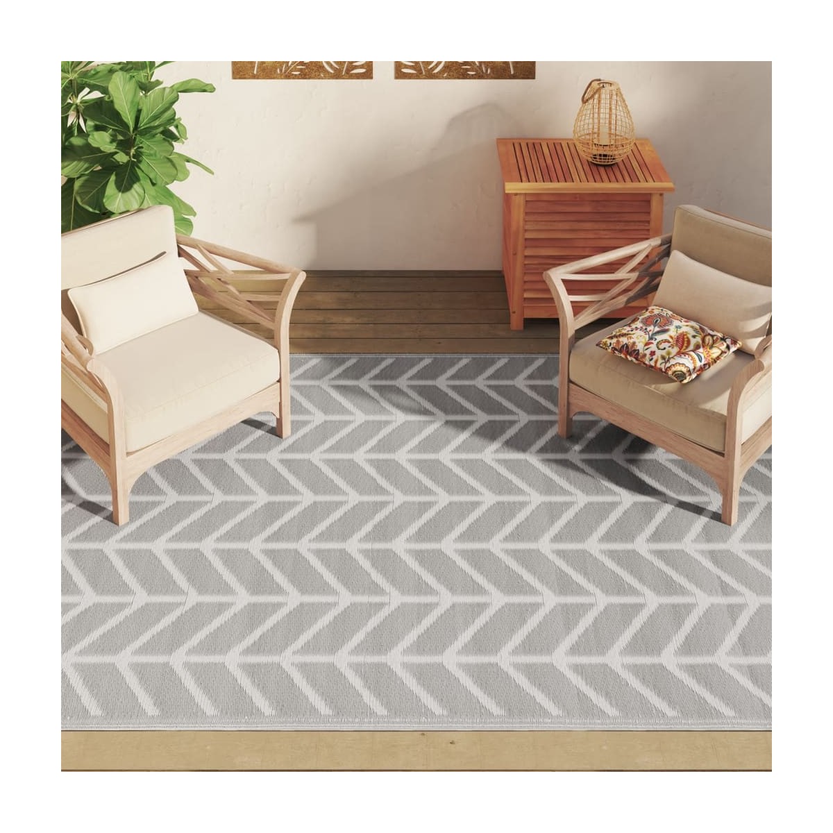 ¡Esta moderna alfombra de exterior es un excelente aporte decorativo para tu patio o terraza! Colócala en la zona de descanso en tu balcón, terraza o patio para que sea más acogedor al instante. Duradera y resistente a los rayos UV: Hecha de polipropileno (PP), esta alfombra está firmemente tejida para ofrecer durabilidad, portabilidad y bajo mantenimiento. Y es resistente a los rayos UV, lo que evita que se decolore o sufra otros daños por el sol.Diseño reversible: Diseñada para ser usada por ambos lados, esta alfombra de jardín tiene dos opciones para que puedas combinarla con la decoración. Si uno de los lados se mancha o te aburres del dibujo, puedes darle la vuelta para dar al suelo un aspecto renovado.Fácil de limpiar: Esta alfombra de exterior es fácil de limpiar. Basta con sacudirla y limpiarla con un paño húmedo, o enjuagarla con una manguera y secarla al aire.Portátil y fácil de guardar: Gracias a su ligereza y a las costuras en el centro, puedes plegar o desplegar libremente la alfombra en una forma ideal para transportarla y guardarla fácilmente cuando no esté en uso.Amplios usos: Esta alfombra de área es adecuada para uso en interiores y al aire libre, incluyendo la cubierta, patio, balcón, jardín, terraza, etc. Información útil:Para una durabilidad y belleza óptimas, te sugerimos que laves a mano la alfombra de exterior a temperatura ambiente.