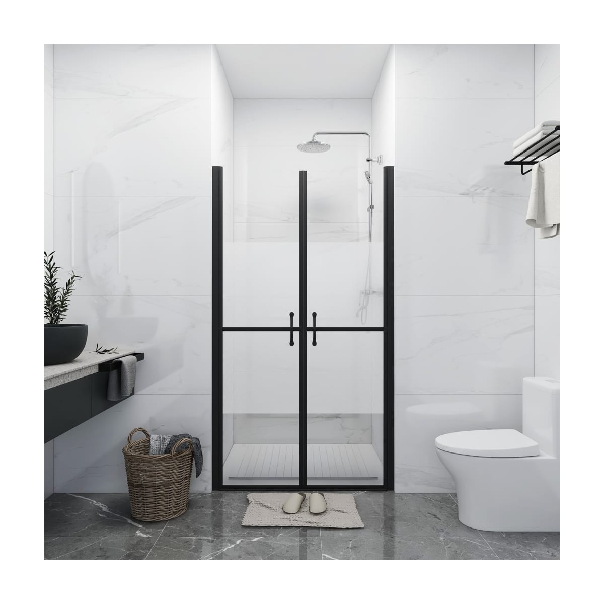 ¡Da una estética industrial al baño con esta moderna puerta de ducha! Material de primera calidad: La mampara de ducha tiene un vidrio ESG sostenido por una resistente estructura de aluminio....