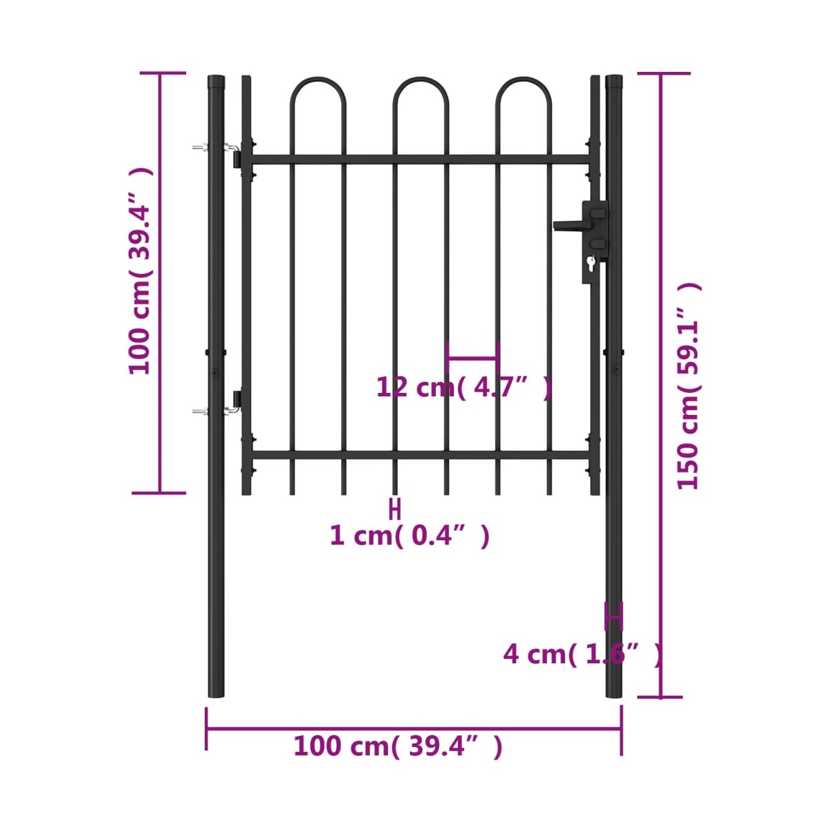 Esta puerta de jardín formará una barrera práctica y moderna, que separará tu jardín del mundo exterior. Muy estable y duradera, la puerta de cerca proporciona una práctica barrera para tu jardín, patio o terraza. Con barras verticales coronadas con extremos en forma de arco y una abrazadera horizontal fuerte como refuerzo, nuestra puerta de jardín proporcionará un alto grado de privacidad y seguridad, mientras forma una fabulosa entrada a tu propiedad. Fabricada en acero resistente, la cancela está recubierta en polvo para protegerla contra el óxido y la corrosión. También viene con una bisagra de perno para un bloqueo rápido y postes de montaje para una fácil instalación. También se incluyen en la entrega 3 llaves. ¡Esta puerta es una gran combinación de estilo, resistencia, estabilidad y resistencia a la corrosión!