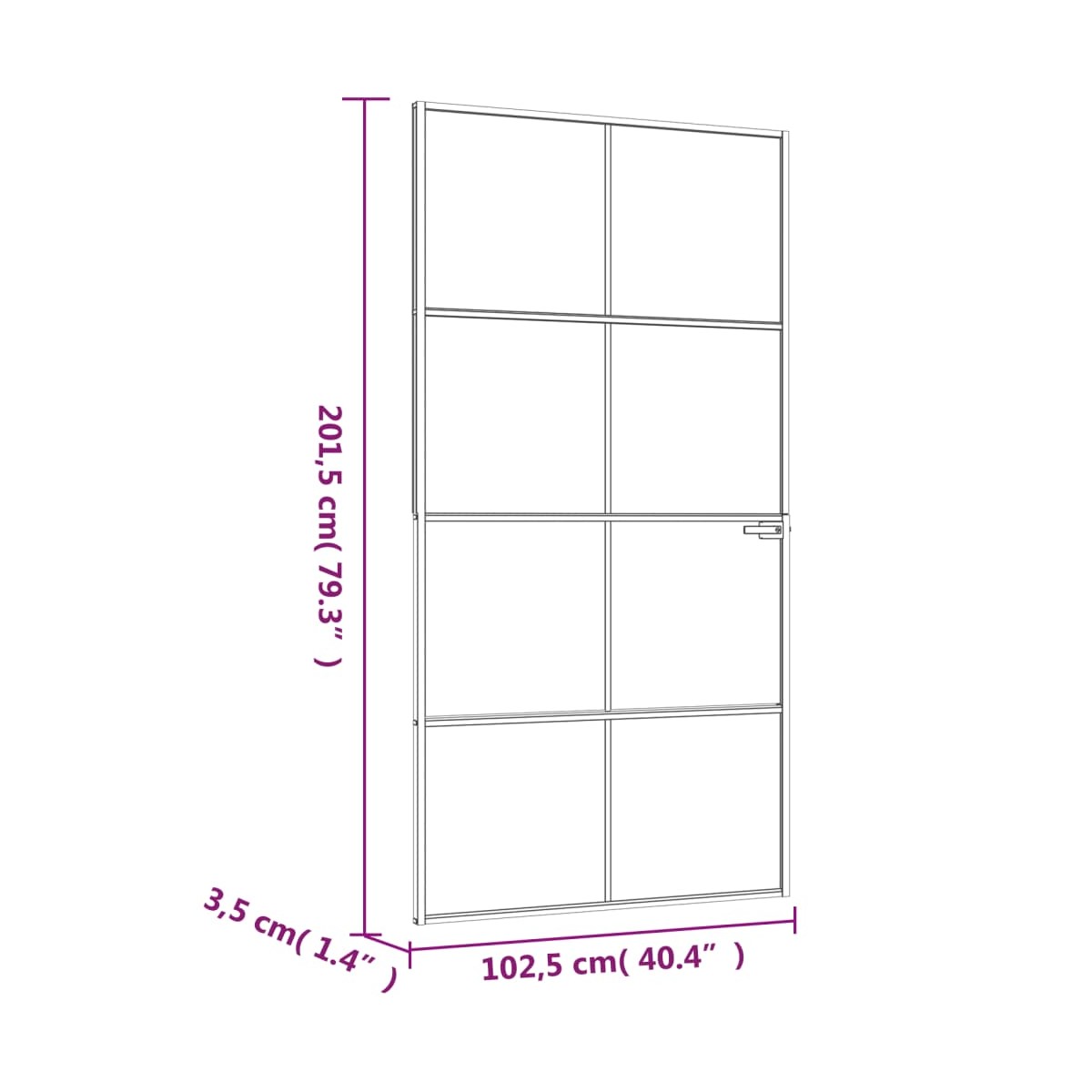 Crea una elegante transición de un espacio a otro con esta puerta interior. Material resistente: Con una estructura inteligente, el cristal templado es más fuerte y duradero que cualquier otro cristal. El vidrio templado es conocido por soportar fuerzas como altos impactos, rayones, golpes, etc.Marco estable: El marco de aluminio garantiza robustez y estabilidad.Paneles grandes de cristal: Los paneles grandes de vidrio templado glaseado permiten el flujo de luz, haciendo de esta una opción ideal para crear un espacio amplio y luminoso.Diseño fino: El fino marco de aluminio da un aspecto moderno y lujoso a la puerta de interior. Nota:Esta puerta interior debe montarse en el marco de puerta de 35-50 mm. Información útil:Para facilitar al máximo el montaje, cada producto se entrega con un manual.
