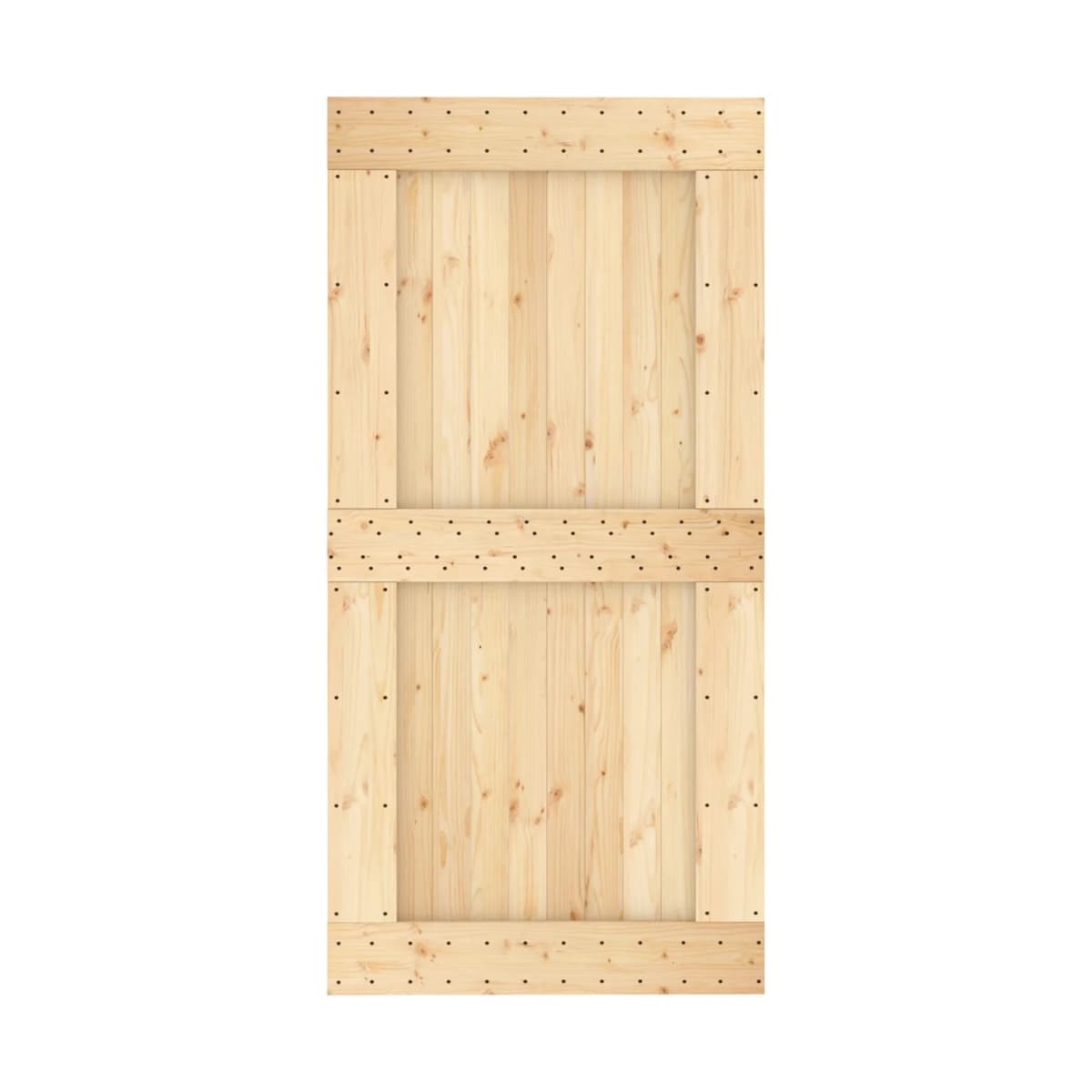 Esta puerta corredera de madera maciza de pino está diseñada para embellecer la zona de entrada de la casa y también para garantizar una mayor seguridad para el hogar. Madera maciza de pino: La puerta interior es de madera maciza de pino. La madera maciza de pino es un bonito material natural. La madera de pino tiene vetas rectas, y los nudos dan al material su distintivo aspecto rústico.Rieles deslizantes resistentes: El acero es un material muy duro y resistente, que ofrece solidez y estabilidad. El recubrimiento en polvo del acero crea una capa protectora contra el desgaste. Hechos de acero con recubrimiento de polvo, los rieles deslizantes son robustos, duraderos y resistentes.Deslizamiento suave y silencioso: Gracias a los rodamientos internos, la puerta corredera interior se deslizará de forma suave y silenciosa. También se incluyen topes de puerta para evitar el descarrilamiento de los rodillos, mientras que las juntas de goma amortiguarán el golpe de los rodillos y reducirán el ruido.Diseño que ahorra espacio: Esta puerta corredera de madera ahorra espacio y parece más amplia. Es la primera opción para un diseño de hogar moderno, sencillo y con un bonito ambiente.Amplio uso: La puerta corredera de granero se puede instalar tanto en paredes de madera como en paredes de hormigón. Es ideal para usar en el dormitorio, la cocina, el granero, el garaje, etc.