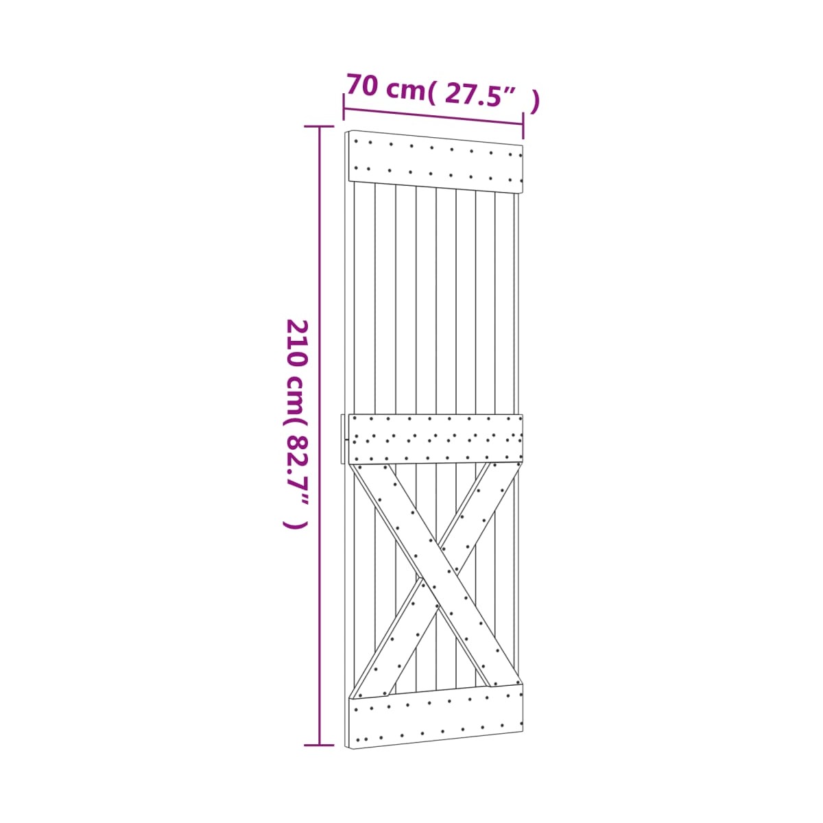 Esta puerta corredera de madera maciza de pino está diseñada para embellecer la zona de entrada de la casa y también para garantizar una mayor seguridad para el hogar. Madera maciza de pino: La puerta interior es de madera maciza de pino. La madera maciza de pino es un bonito material natural. La madera de pino tiene vetas rectas, y los nudos dan al material su distintivo aspecto rústico.Rieles deslizantes resistentes: El acero es un material muy duro y resistente, que ofrece solidez y estabilidad. El recubrimiento en polvo del acero crea una capa protectora contra el desgaste. Hechos de acero con recubrimiento de polvo, los rieles deslizantes son robustos, duraderos y resistentes.Deslizamiento suave y silencioso: Gracias a los rodamientos internos, la puerta corredera interior se deslizará de forma suave y silenciosa. También se incluyen topes de puerta para evitar el descarrilamiento de los rodillos, mientras que las juntas de goma amortiguarán el golpe de los rodillos y reducirán el ruido.Diseño que ahorra espacio: Esta puerta corredera de madera ahorra espacio y parece más amplia. Es la primera opción para un diseño de hogar moderno, sencillo y con un bonito ambiente.Amplio uso: La puerta corredera de granero se puede instalar tanto en paredes de madera como en paredes de hormigón. Es ideal para usar en el dormitorio, la cocina, el granero, el garaje, etc.