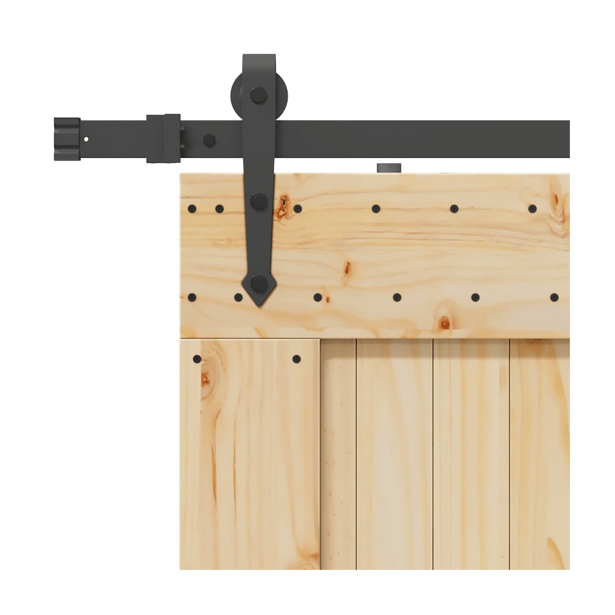 Esta puerta corredera de madera maciza de pino está diseñada para embellecer la zona de entrada de la casa y también para garantizar una mayor seguridad para el hogar. Madera maciza de pino: La puerta interior es de madera maciza de pino. La madera maciza de pino es un bonito material natural. La madera de pino tiene vetas rectas, y los nudos dan al material su distintivo aspecto rústico.Rieles deslizantes resistentes: El acero es un material muy duro y resistente, que ofrece solidez y estabilidad. El recubrimiento en polvo del acero crea una capa protectora contra el desgaste. Hechos de acero con recubrimiento de polvo, los rieles deslizantes son robustos, duraderos y resistentes.Deslizamiento suave y silencioso: Gracias a los rodamientos internos, la puerta corredera interior se deslizará de forma suave y silenciosa. También se incluyen topes de puerta para evitar el descarrilamiento de los rodillos, mientras que las juntas de goma amortiguarán el golpe de los rodillos y reducirán el ruido.Diseño que ahorra espacio: Esta puerta corredera de madera ahorra espacio y parece más amplia. Es la primera opción para un diseño de hogar moderno, sencillo y con un bonito ambiente.Amplio uso: La puerta corredera de granero se puede instalar tanto en paredes de madera como en paredes de hormigón. Es ideal para usar en el dormitorio, la cocina, el granero, el garaje, etc.
