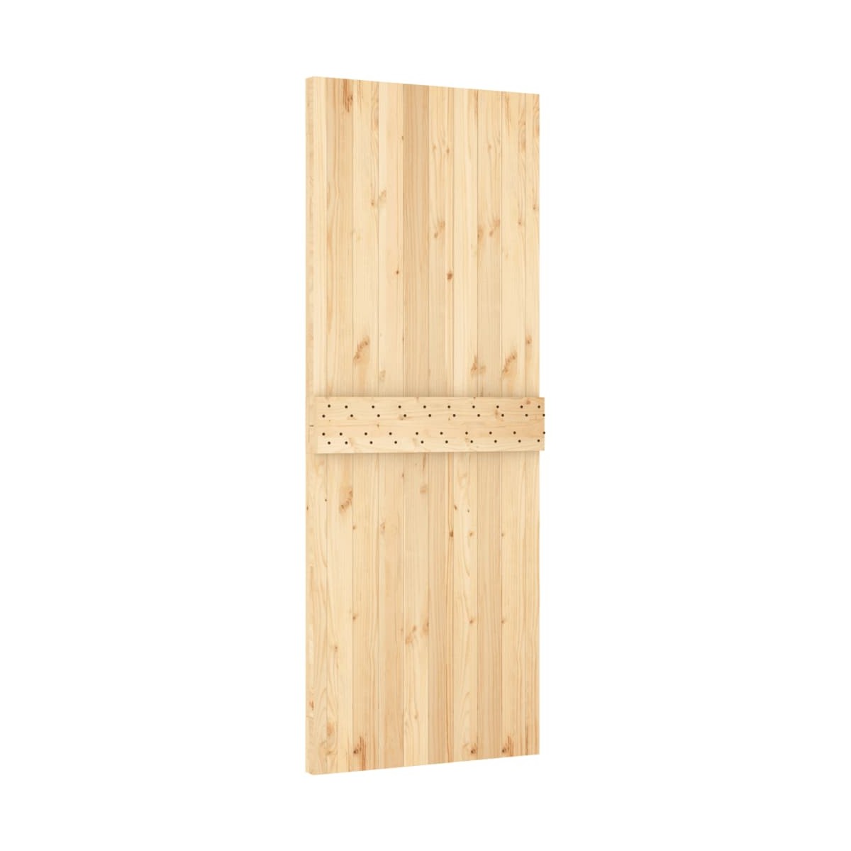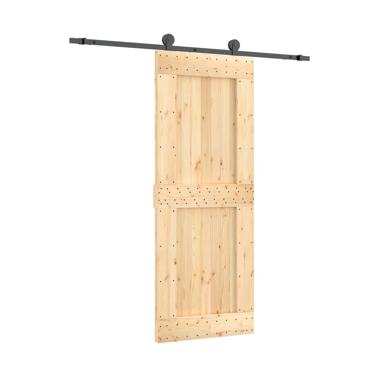 Esta puerta corredera de madera maciza de pino está diseñada para embellecer la zona de entrada de la casa y también para garantizar una mayor seguridad para el hogar. Madera maciza de pino: La puerta interior es de madera maciza de pino. La madera maciza de pino es un bonito material natural. La madera de pino tiene vetas rectas, y los nudos dan al material su distintivo aspecto rústico.Rieles deslizantes resistentes: El acero es un material muy duro y resistente, que ofrece solidez y estabilidad. El recubrimiento en polvo del acero crea una capa protectora contra el desgaste. Hechos de acero con recubrimiento de polvo, los rieles deslizantes son robustos, duraderos y resistentes.Deslizamiento suave y silencioso: Gracias a los rodamientos internos, la puerta corredera interior se deslizará de forma suave y silenciosa. También se incluyen topes de puerta para evitar el descarrilamiento de los rodillos, mientras que las juntas de goma amortiguarán el golpe de los rodillos y reducirán el ruido.Diseño que ahorra espacio: Esta puerta corredera de madera ahorra espacio y parece más amplia. Es la primera opción para un diseño de hogar moderno, sencillo y con un bonito ambiente.Amplio uso: La puerta corredera de granero se puede instalar tanto en paredes de madera como en paredes de hormigón. Es ideal para usar en el dormitorio, la cocina, el granero, el garaje, etc.
