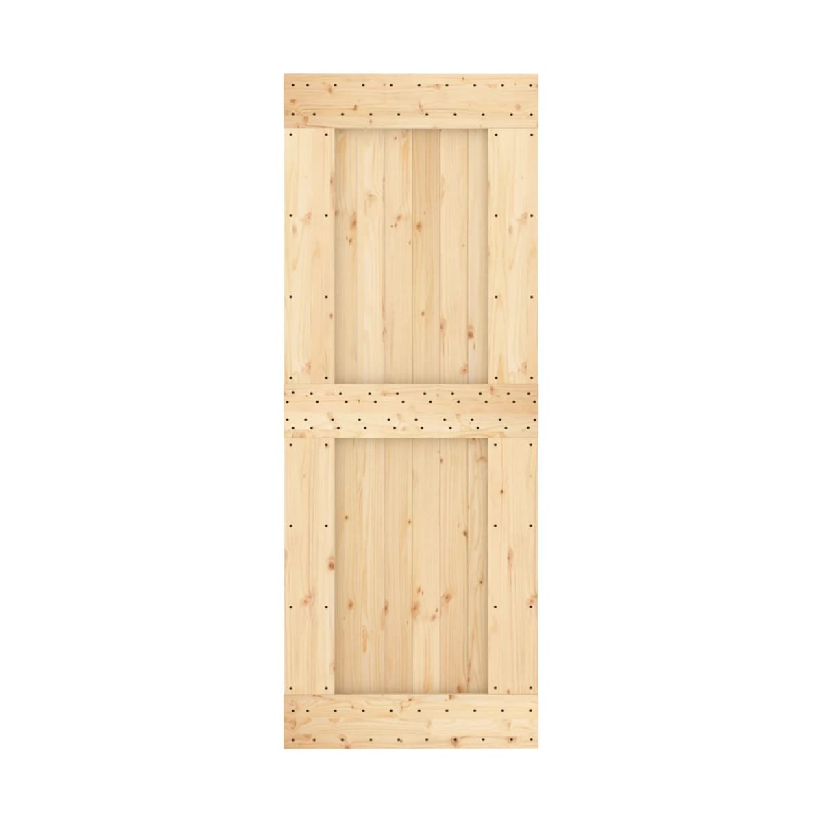 Esta puerta corredera de madera maciza de pino está diseñada para embellecer la zona de entrada de la casa y también para garantizar una mayor seguridad para el hogar. Madera maciza de pino: La puerta interior es de madera maciza de pino. La madera maciza de pino es un bonito material natural. La madera de pino tiene vetas rectas, y los nudos dan al material su distintivo aspecto rústico.Rieles deslizantes resistentes: El acero es un material muy duro y resistente, que ofrece solidez y estabilidad. El recubrimiento en polvo del acero crea una capa protectora contra el desgaste. Hechos de acero con recubrimiento de polvo, los rieles deslizantes son robustos, duraderos y resistentes.Deslizamiento suave y silencioso: Gracias a los rodamientos internos, la puerta corredera interior se deslizará de forma suave y silenciosa. También se incluyen topes de puerta para evitar el descarrilamiento de los rodillos, mientras que las juntas de goma amortiguarán el golpe de los rodillos y reducirán el ruido.Diseño que ahorra espacio: Esta puerta corredera de madera ahorra espacio y parece más amplia. Es la primera opción para un diseño de hogar moderno, sencillo y con un bonito ambiente.Amplio uso: La puerta corredera de granero se puede instalar tanto en paredes de madera como en paredes de hormigón. Es ideal para usar en el dormitorio, la cocina, el granero, el garaje, etc.