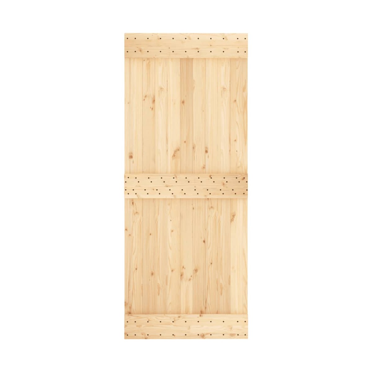 Esta puerta corredera de madera maciza de pino está diseñada para embellecer la zona de entrada de la casa y también para garantizar una mayor seguridad para el hogar. Madera maciza de pino: La puerta interior es de madera maciza de pino. La madera maciza de pino es un bonito material natural. La madera de pino tiene vetas rectas, y los nudos dan al material su distintivo aspecto rústico.Rieles deslizantes resistentes: El acero es un material muy duro y resistente, que ofrece solidez y estabilidad. El recubrimiento en polvo del acero crea una capa protectora contra el desgaste. Hechos de acero con recubrimiento de polvo, los rieles deslizantes son robustos, duraderos y resistentes.Deslizamiento suave y silencioso: Gracias a los rodamientos internos, la puerta corredera interior se deslizará de forma suave y silenciosa. También se incluyen topes de puerta para evitar el descarrilamiento de los rodillos, mientras que las juntas de goma amortiguarán el golpe de los rodillos y reducirán el ruido.Diseño que ahorra espacio: Esta puerta corredera de madera ahorra espacio y parece más amplia. Es la primera opción para un diseño de hogar moderno, sencillo y con un bonito ambiente.Amplio uso: La puerta corredera de granero se puede instalar tanto en paredes de madera como en paredes de hormigón. Es ideal para usar en el dormitorio, la cocina, el granero, el garaje, etc.