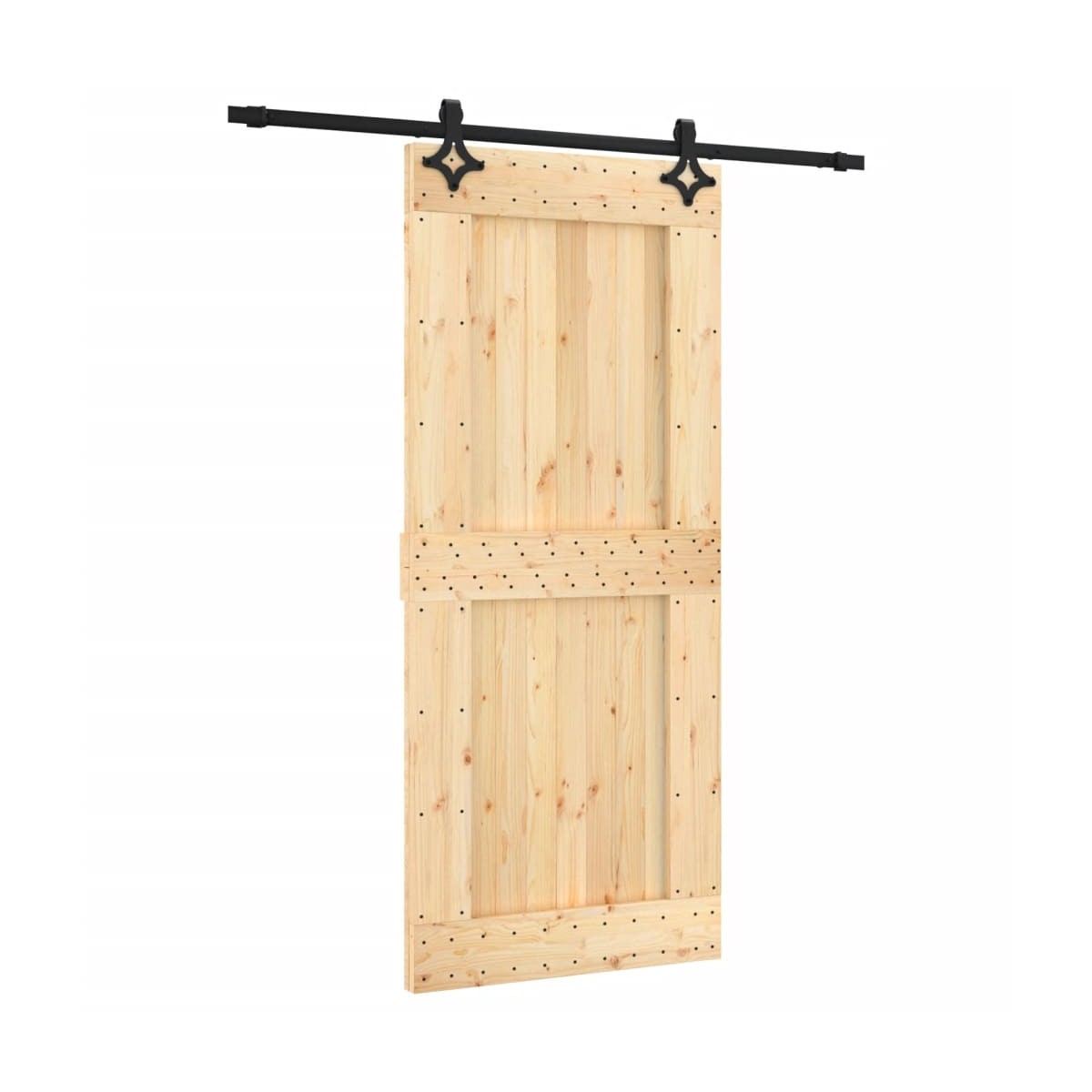 Esta puerta corredera de madera maciza de pino está diseñada para embellecer la zona de entrada de la casa y también para garantizar una mayor seguridad para el hogar. Madera maciza de pino: La puerta interior es de madera maciza de pino. La madera maciza de pino es un bonito material natural. La madera de pino tiene vetas rectas, y los nudos dan al material su distintivo aspecto rústico.Rieles deslizantes resistentes: El acero es un material muy duro y resistente, que ofrece solidez y estabilidad. El recubrimiento en polvo del acero crea una capa protectora contra el desgaste. Hechos de acero con recubrimiento de polvo, los rieles deslizantes son robustos, duraderos y resistentes.Deslizamiento suave y silencioso: Gracias a los rodamientos internos, la puerta corredera interior se deslizará de forma suave y silenciosa. También se incluyen topes de puerta para evitar el descarrilamiento de los rodillos, mientras que las juntas de goma amortiguarán el golpe de los rodillos y reducirán el ruido.Diseño que ahorra espacio: Esta puerta corredera de madera ahorra espacio y parece más amplia. Es la primera opción para un diseño de hogar moderno, sencillo y con un bonito ambiente.Amplio uso: La puerta corredera de granero se puede instalar tanto en paredes de madera como en paredes de hormigón. Es ideal para usar en el dormitorio, la cocina, el granero, el garaje, etc.