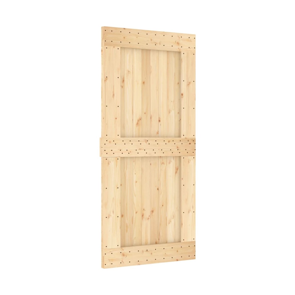 Esta puerta corredera de madera maciza de pino está diseñada para embellecer la zona de entrada de la casa y también para garantizar una mayor seguridad para el hogar. Madera maciza de pino: La puerta interior es de madera maciza de pino. La madera maciza de pino es un bonito material natural. La madera de pino tiene vetas rectas, y los nudos dan al material su distintivo aspecto rústico.Rieles deslizantes resistentes: El acero es un material muy duro y resistente, que ofrece solidez y estabilidad. El recubrimiento en polvo del acero crea una capa protectora contra el desgaste. Hechos de acero con recubrimiento de polvo, los rieles deslizantes son robustos, duraderos y resistentes.Deslizamiento suave y silencioso: Gracias a los rodamientos internos, la puerta corredera interior se deslizará de forma suave y silenciosa. También se incluyen topes de puerta para evitar el descarrilamiento de los rodillos, mientras que las juntas de goma amortiguarán el golpe de los rodillos y reducirán el ruido.Diseño que ahorra espacio: Esta puerta corredera de madera ahorra espacio y parece más amplia. Es la primera opción para un diseño de hogar moderno, sencillo y con un bonito ambiente.Amplio uso: La puerta corredera de granero se puede instalar tanto en paredes de madera como en paredes de hormigón. Es ideal para usar en el dormitorio, la cocina, el granero, el garaje, etc.
