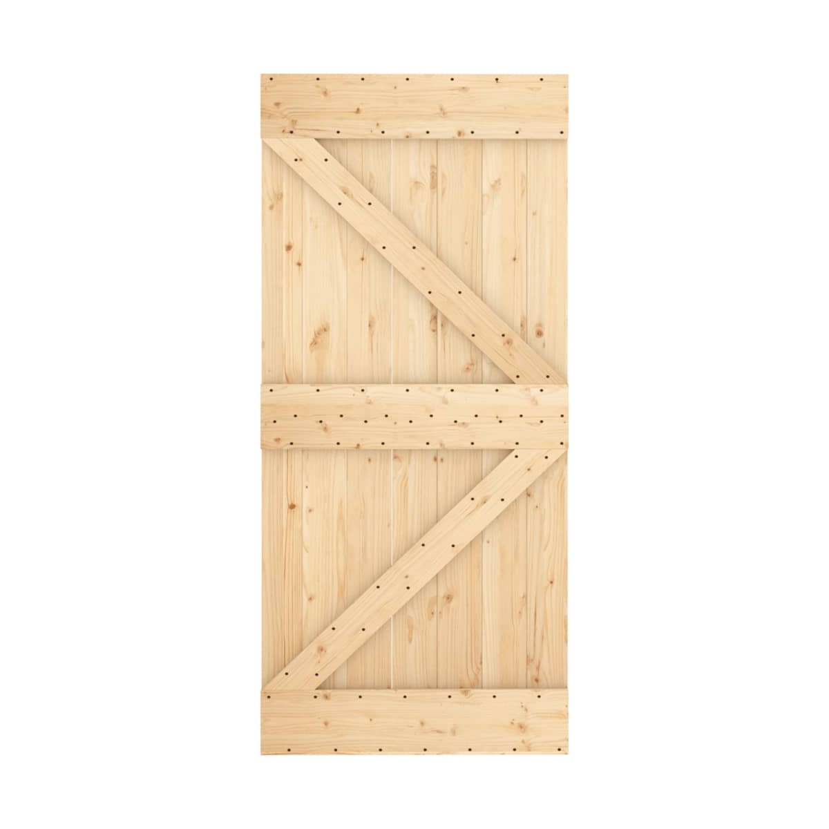 Esta puerta corredera de madera maciza de pino está diseñada para embellecer la zona de entrada de la casa y también para garantizar una mayor seguridad para el hogar. Madera maciza de pino: La puerta interior es de madera maciza de pino. La madera maciza de pino es un bonito material natural. La madera de pino tiene vetas rectas, y los nudos dan al material su distintivo aspecto rústico.Rieles deslizantes resistentes: El acero es un material muy duro y resistente, que ofrece solidez y estabilidad. El recubrimiento en polvo del acero crea una capa protectora contra el desgaste. Hechos de acero con recubrimiento de polvo, los rieles deslizantes son robustos, duraderos y resistentes.Deslizamiento suave y silencioso: Gracias a los rodamientos internos, la puerta corredera interior se deslizará de forma suave y silenciosa. También se incluyen topes de puerta para evitar el descarrilamiento de los rodillos, mientras que las juntas de goma amortiguarán el golpe de los rodillos y reducirán el ruido.Diseño que ahorra espacio: Esta puerta corredera de madera ahorra espacio y parece más amplia. Es la primera opción para un diseño de hogar moderno, sencillo y con un bonito ambiente.Amplio uso: La puerta corredera de granero se puede instalar tanto en paredes de madera como en paredes de hormigón. Es ideal para usar en el dormitorio, la cocina, el granero, el garaje, etc.