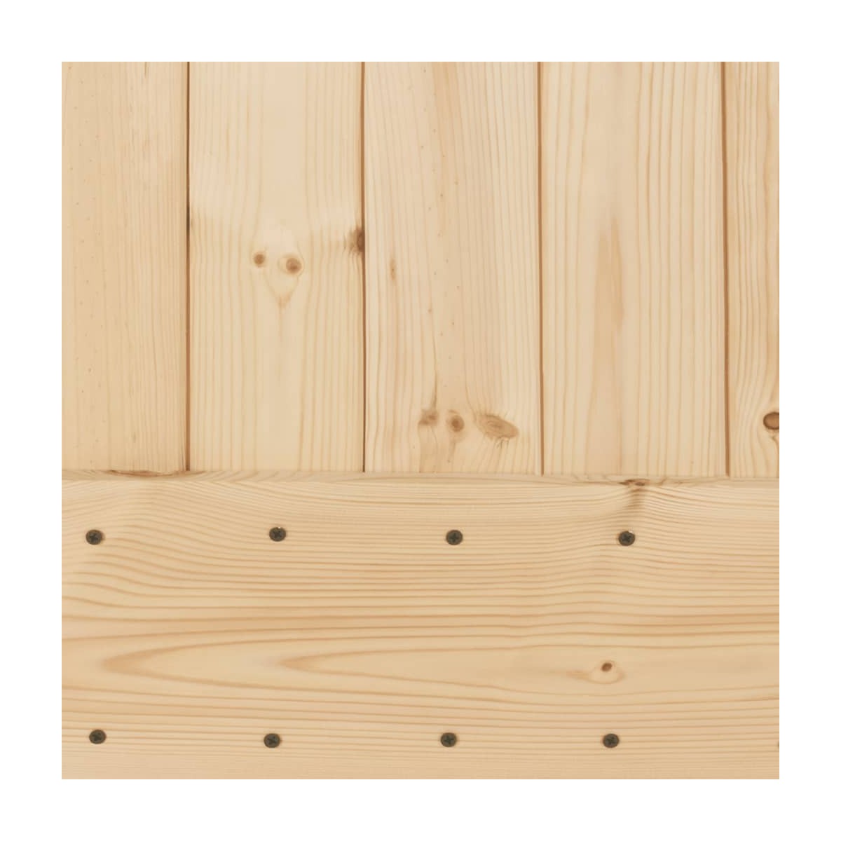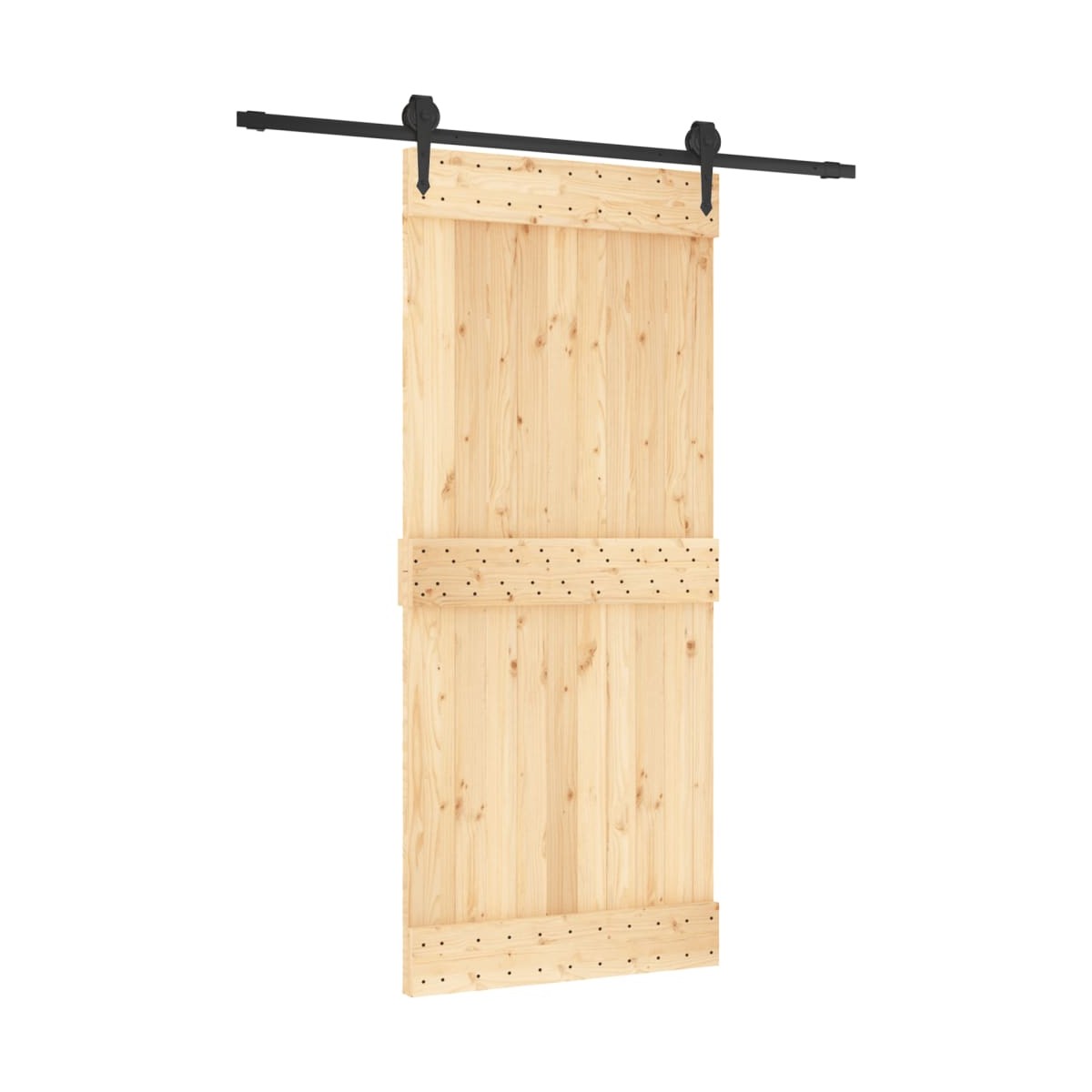 Esta puerta corredera de madera maciza de pino está diseñada para embellecer la zona de entrada de la casa y también para garantizar una mayor seguridad para el hogar. Madera maciza de pino: La puerta interior es de madera maciza de pino. La madera maciza de pino es un bonito material natural. La madera de pino tiene vetas rectas, y los nudos dan al material su distintivo aspecto rústico.Rieles deslizantes resistentes: El acero es un material muy duro y resistente, que ofrece solidez y estabilidad. El recubrimiento en polvo del acero crea una capa protectora contra el desgaste. Hechos de acero con recubrimiento de polvo, los rieles deslizantes son robustos, duraderos y resistentes.Deslizamiento suave y silencioso: Gracias a los rodamientos internos, la puerta corredera interior se deslizará de forma suave y silenciosa. También se incluyen topes de puerta para evitar el descarrilamiento de los rodillos, mientras que las juntas de goma amortiguarán el golpe de los rodillos y reducirán el ruido.Diseño que ahorra espacio: Esta puerta corredera de madera ahorra espacio y parece más amplia. Es la primera opción para un diseño de hogar moderno, sencillo y con un bonito ambiente.Amplio uso: La puerta corredera de granero se puede instalar tanto en paredes de madera como en paredes de hormigón. Es ideal para usar en el dormitorio, la cocina, el granero, el garaje, etc.