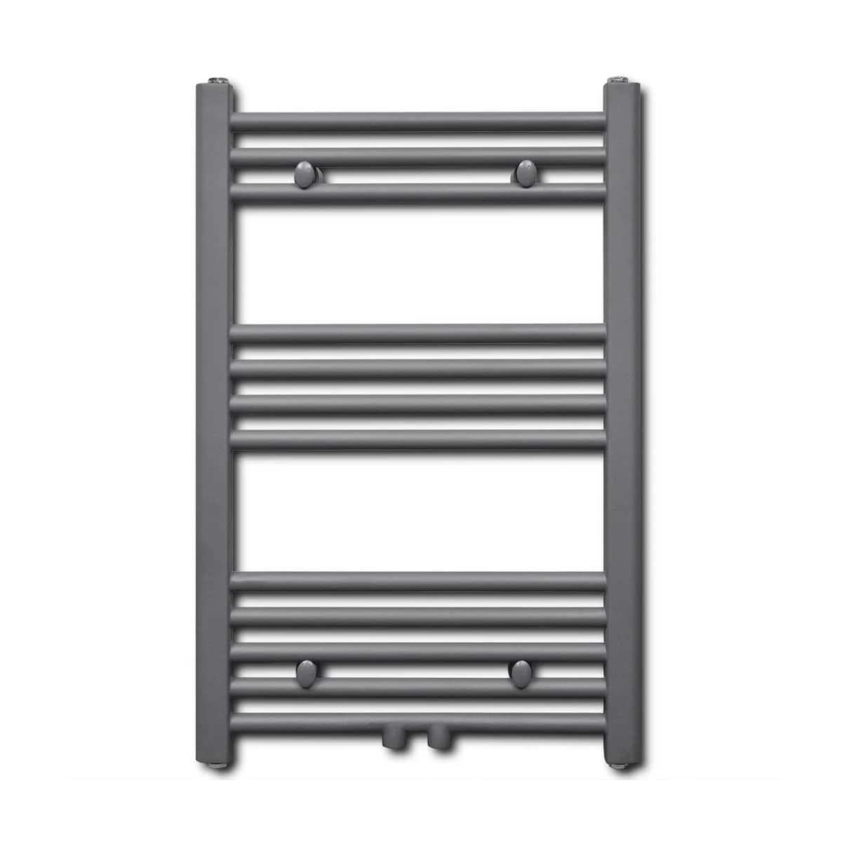 Este radiador toallero está diseñado para doble propósito, como calentador de toallas y calentador de espacio. Ayuda a que los baños se mantengan calientes, libres de moho y es adecuado para secar toallas grandes y albornoces largos mientras tanto. Gracias a la ayuda del sistema de circulación de agua caliente, que no utiliza electricidad, las toallas se secarán enseguida. El radiador toallero tiene 12 barras transversales de acero de 22 mm de diámetro y está pintado de gris. Las barras transversales son extragruesas y, por eso, producen más calor. La parte superior y la inferior están equipadas con entradas de agua para optimizar el flujo de agua. Es fácil de montar y mantener. La entrega incluye 1 radiador toallero, soportes de pared y tornillos.