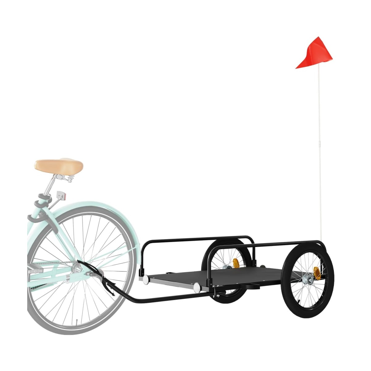 Este versátil y resistente remolque para bicicletas será ideal para transportar mercancías pesadas gracias a su capacidad de carga máxima de 45 kg. Material resistente: El hierro es un material fuerte y duro. Es el metal sólido favorito en la construcción industrial y de muebles. Hecho de hierro, este remolque para bicicletas es muy resistente y duradero.Diseño práctico: Este carro para bicicletas, con una capacidad de carga máxima de 45 kg, es perfecto para transportar mercancías pesadas como maletas, plantas, herramientas o comida.Diseño considerado: El remolque para bicicletas cuenta con una barra de remolque que facilita su conexión a la bici. Además, se incluye una bandera de seguridad para lograr una mayor visibilidad.