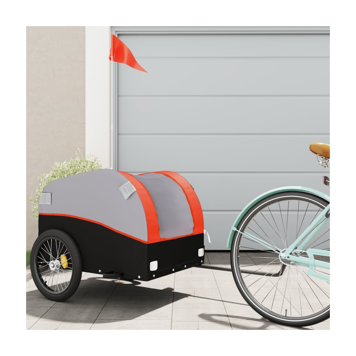 Este versátil y resistente remolque para bicicletas será ideal para transportar mercancías pesadas gracias a su capacidad de carga máxima de 45 kg. Material resistente: El hierro es un material fuerte y duro. Es el metal sólido favorito en la construcción industrial y de muebles. Hecho de hierro, este remolque para bicicletas es muy resistente y duradero.Diseño práctico: Este carro para bicicletas, con una capacidad de carga máxima de 45 kg, es perfecto para transportar mercancías pesadas como maletas, plantas, herramientas o comida.Diseño considerado: El remolque para bicicletas cuenta con una barra de remolque que facilita su conexión a la bici. Además, se incluye una bandera de seguridad para lograr una mayor visibilidad.