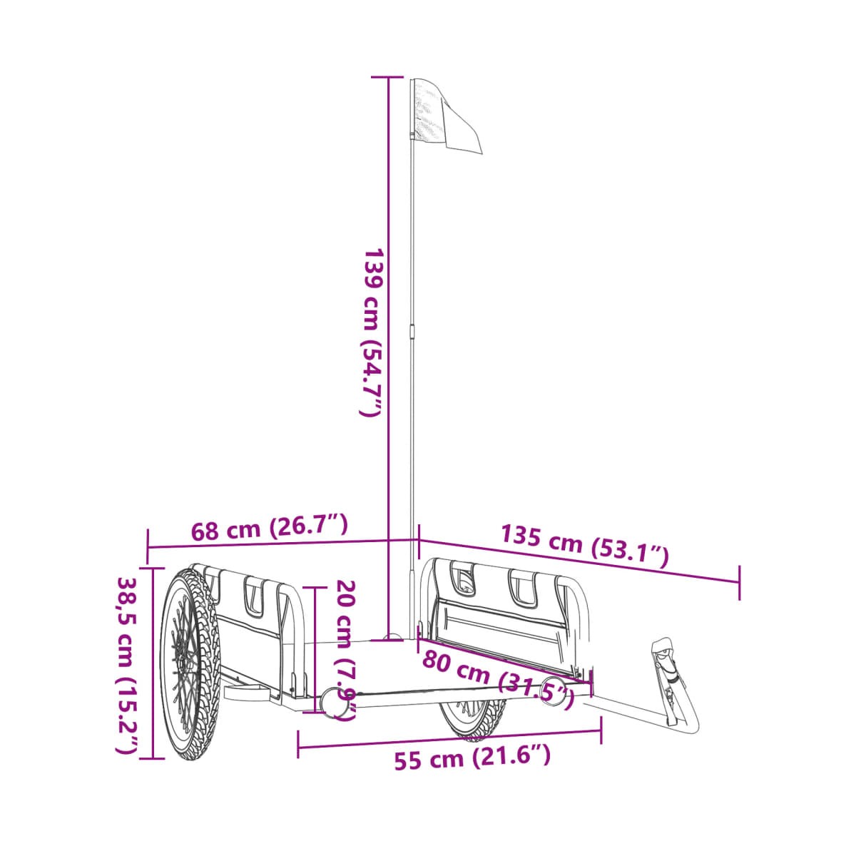 Este remolque para bicicletas sirve perfectamente para cualquier propósito con tan solo engancharlo a la bicicleta. Construcción robusta: Este remolque para bicicletas tiene una construcción robusta, hecha de hierro con recubrimiento en polvo. El hierro es un material fuerte y duro. Es uno de los metales sólidos preferidos en la construcción industrial y de muebles. El recubrimiento en polvo de la superficie de hierro crea una capa protectora contra el óxido, la corrosión y el desgaste.Material duradero: Este remolque para bicicletas está hecho de tela Oxford, que es ligera, resistente al agua y también a los daños y la suciedad. El hilo utilizado para el tejido hace que la tela sea duradera y transpirable. También es resistente a las arrugas por naturaleza.Conducción segura: El remolque de carga para bicis tiene dos ruedas grandes que permiten un trayecto suave y magnífico sobre diversos terrenos, y los reflectores de la parte trasera proporcionan visibilidad en la oscuridad. Además, la bandera aumenta la seguridad entre el tráfico.Muchos usos: Fácil de acoplar a tu bicicleta, este carrito de bicicleta puede transportar todo lo que necesites, como maletas, plantas, herramientas o comestibles.