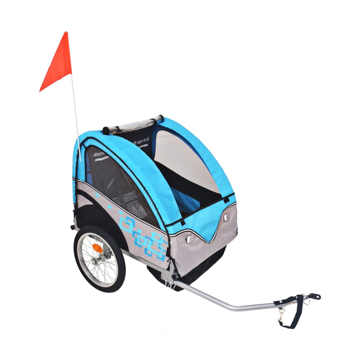 Este remolque para bicicletas ofrece un paseo cómodo y seguro para los niños cuando sales en bicicleta. Sirve para 1 a 2 niños con un peso máximo total de 30 kg. El sistema del arnés de seguridad de 5 puntos ofrece una seguridad óptima para las criaturas. El resistente y duradero remolque está hecho de acero de alta resistencia. El toldo para todo tipo de tiempo y la rejilla de malla protegen a los niños de la lluvia o el sol, y las dos ventanas laterales transparentes ofrecen una gran visibilidad de la carretera. Este remolque de bicicleta para niños cuenta con un enganche de liberación rápida para acoplarlo fácilmente a una bicicleta. Los colores son muy visibles y los reflectores de las ruedas aportan mayor visibilidad. Los dos bolsillos interiores proporcionan un amplio espacio de almacenaje para comidas, juguetes y otras necesidades. Este remolque para bicicletas también se puede plegar para guardarlo y transportarlo fácilmente. En la entrega también se incluye una bandera de seguridad para mayor visibilidad. El montaje es muy sencillo.
