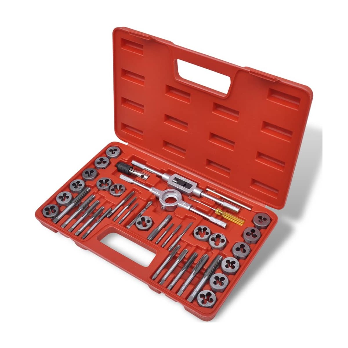 Este juego de machos y terrajas tiene 111 piezas. Este conjunto es imprescindible para los profesionales y los aficionados al bricolaje.